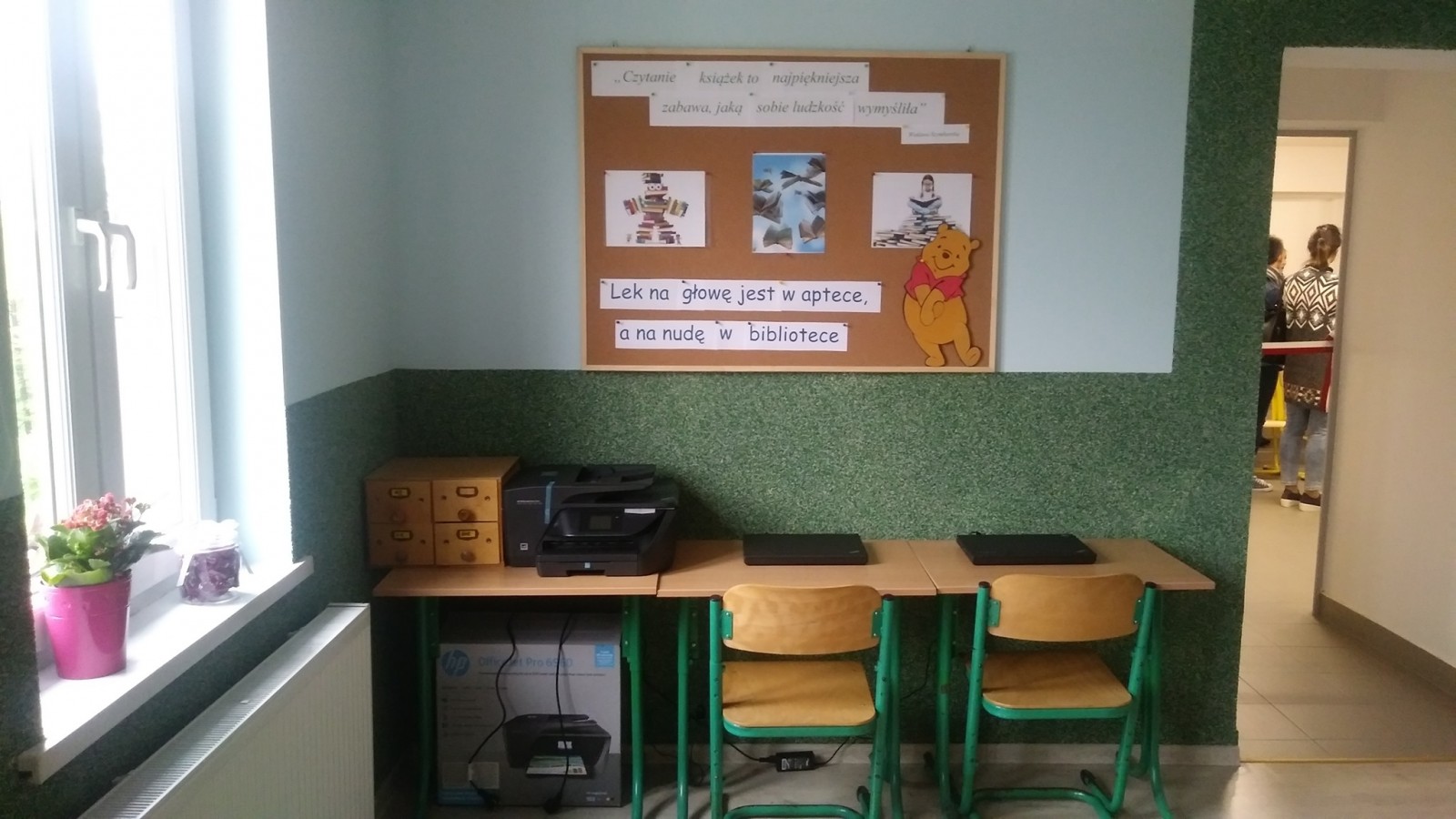 Siłą pracy i zaangażowania wielu osób powstała przestronna, nowoczesna biblioteka szkolna, w której dzieci chętnie przebywają. Oprócz regałów z książkami jest strefa zabawy i relaksu, w której dzieci czytają, odpoczywają, grają w gry planszowe. Jest też strefa multimedialna ze stanowiskami komputerowymi i drukarką przeznaczona dla uczniów starszych, gdzie mogą poszukiwać informacji i pogłębiać wiedzę. Biblioteka tętni teraz życiem i jak mówią uczniowie: „Jest sercem naszej szkoły“.