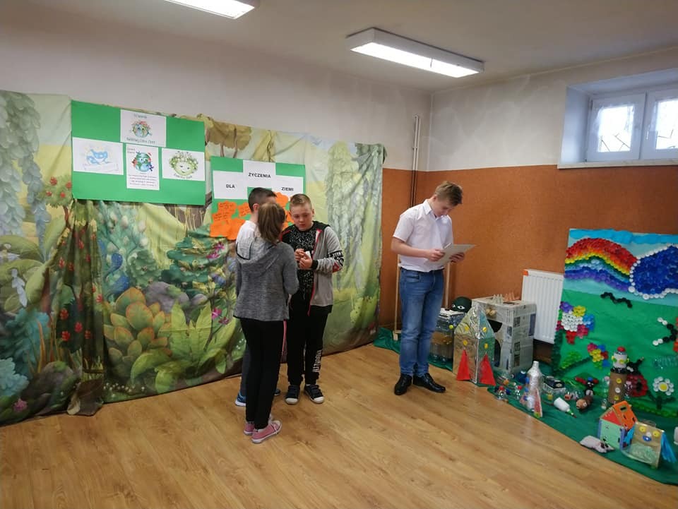 Każda klasa wcześniej przygotowywała ekotwory, czyli prace plastyczne wykonywane z materiałów recyklingowych, które zostały oceniane przez wyznaczoną komisję. Następnie wychowawca każdej klasy wyznaczył trzy osoby do odpowiadania na pytania przyrodniczo – ekologiczne. Na koniec punkty zdobyte z wiedzy ekologiczno-przyrodniczej oraz konkursu plastycznego zostały podsumowane i wyłoniono zwycięzców: pierwsze miejsce ex aequo dla klasy I i VIII oraz miejsce drugie dla klasy III.