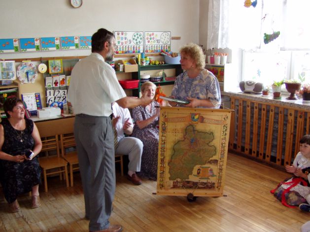 Dość bogato wyposażony kącik, wzbogacony został o pozycję książkową pt."Radziechowy - monografia wsi" Hieronima Woźniaka oraz mapę "Powiat Żywiecki" z miejscowościami i ich herbami, ofiarowaną przez przewodniczącego Rady Gminy Pana Edwarda Dudka. Po uroczystym przecięciu wstęgi przez Panią mgr Jadwigę Dybał, Panią mgr Annę Błachut i Pana Edwarda Dudka, wszyscy goście zostali zaproszeni na regionalne danie (prażuchy z oskubkami i kwaśne mleko).