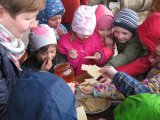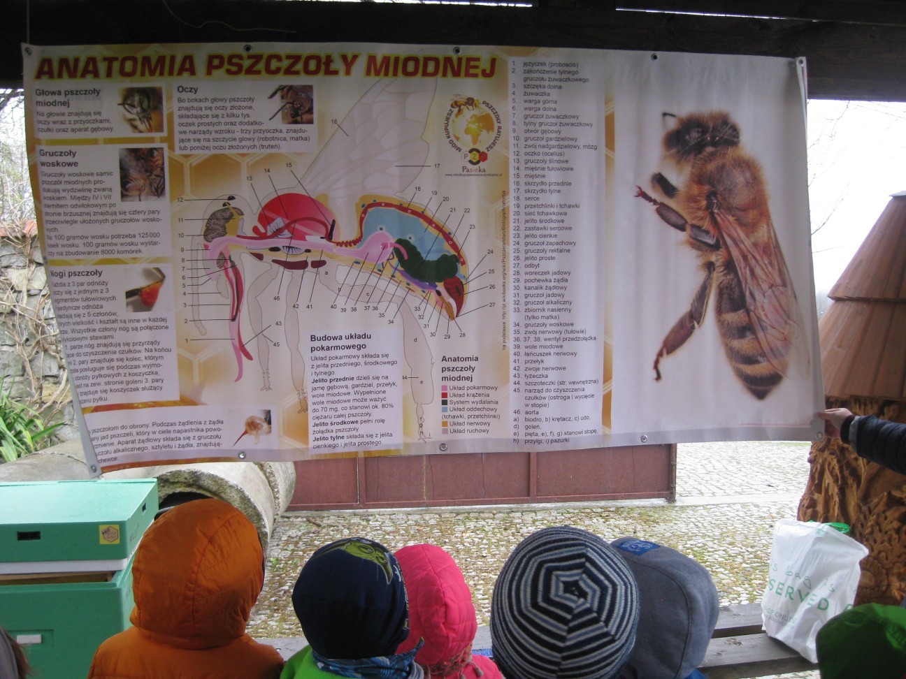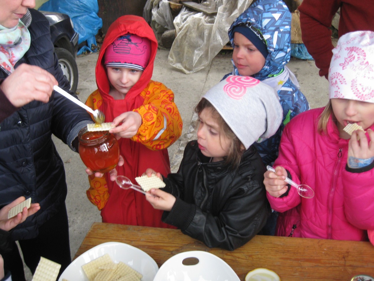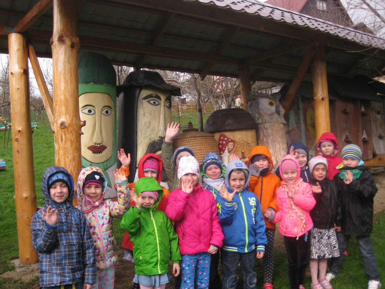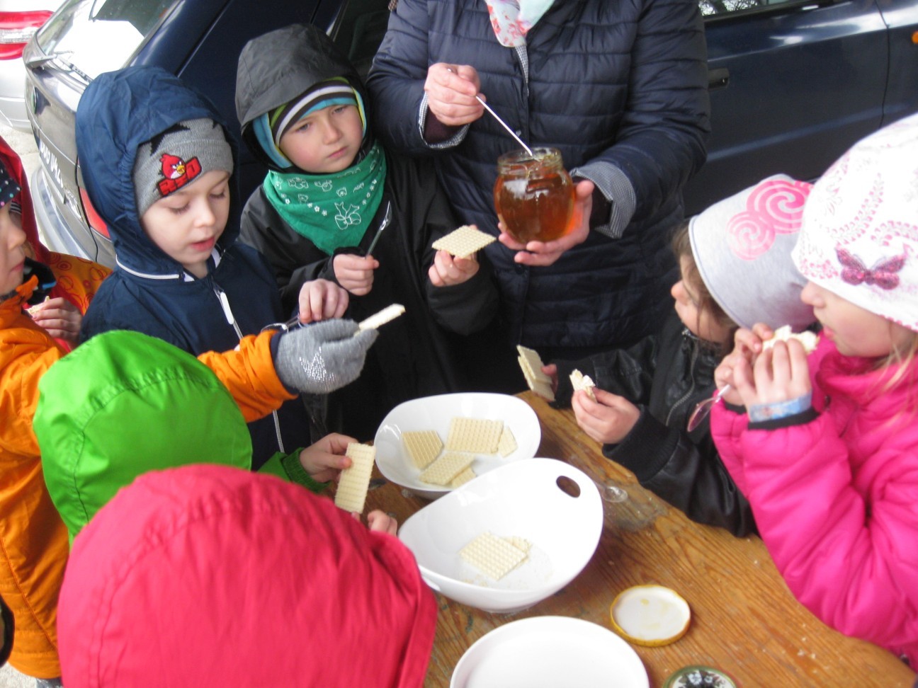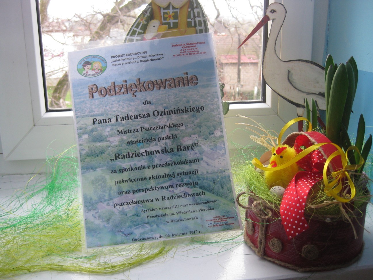 Poszukiwania informacji na temat wykorzystania w przyszłości potencjału przyrodniczego i turystycznego zaprowadziły nas tym razem do pasieki Państwa Ozimińskich „Radziechowska Barć”. Mistrz pszczelarski Pan Tadeusz Ozimiński przygotował dla przedszkolaków profesjonalne zajęcia edukacyjne na temat historii pszczelarstwa i jego obecnej sytuacji w kraju i na świecie. Mało kto z nas wiedział, że pszczoły istniały na Ziemi już w czasach dinozaurów. Fascynująca organizacja umożliwiła tej owadziej społeczności przetrwanie przez setki milionów lat. Jednakże obecnie największym zagrożeniem dla świata pszczół i wszelkich wartości płynących z ich istnienia jest niestety człowiek i tworzona przez niego cywilizacja. Są kraje, gdzie zagłada owadów doprowadziła do tego, że ludzie muszą pędzelkami zapylać drzewa owocowe! Na szczęście są podejmowane działania ratunkowe. Wymaga to wiedzy i pasji wielu ludzi, jak również wzrostu ogólnej świadomości społeczeństwa na temat zagrożeń. To nasi wychowankowie w przyszłości będą podejmowali decyzje, mające wpływ na stan środowiska naturalnego. Przedszkolaki miały okazję obejrzeć nowocześnie zorganizowane przedsiębiorstwo pszczelarskie i porównać jego rozwój z informacjami historycznymi. Państwo Ozimińscy zadbali o ocalenie od zapomnienia uli, których wiek sięga często stu lat. Podsumowaniem warsztatów pszczelarskich dla przedszkolaków była wspólna konsumpcja miodu i pyłku pszczelego z Radziechowskiej Barci. Dziękujemy Panu Tadeuszowi Ozimińskiemu za wartościowe spotkanie i pozostaje nam mieć nadzieję, że zdobyta przez naszych przedszkolaków wiedza przyczyni się w przyszłości do przetrwania i rozwoju pszczelarstwa w naszej małej ojczyźnie. Pozwólmy pszczołom zapylać rośliny i wytwarzać miód.