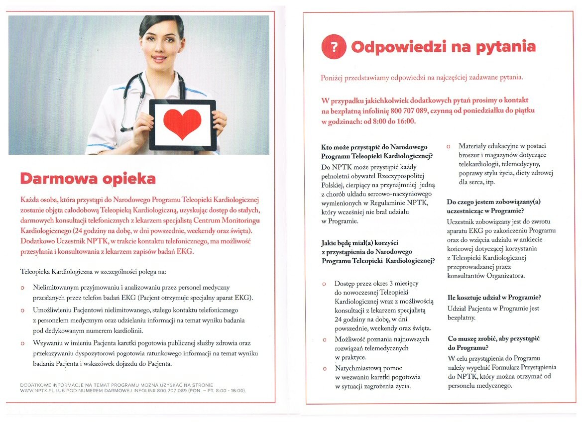 Narodowy Program Teleopieki Kardiologicznej - broszura informacyjna: www.nptk.pl