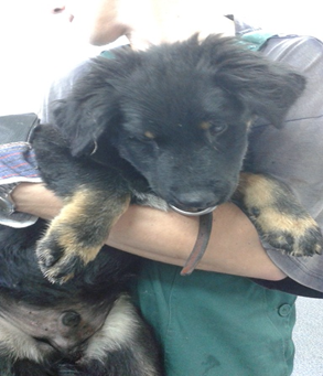 Ma około 5- 6 lat ( ur. 2008/09 r. ) mieszaniec, brązowo-czarny. Przyjaźnie nastawiony do ludzi. Znaleziony w Juszczynie 10.03.2014.