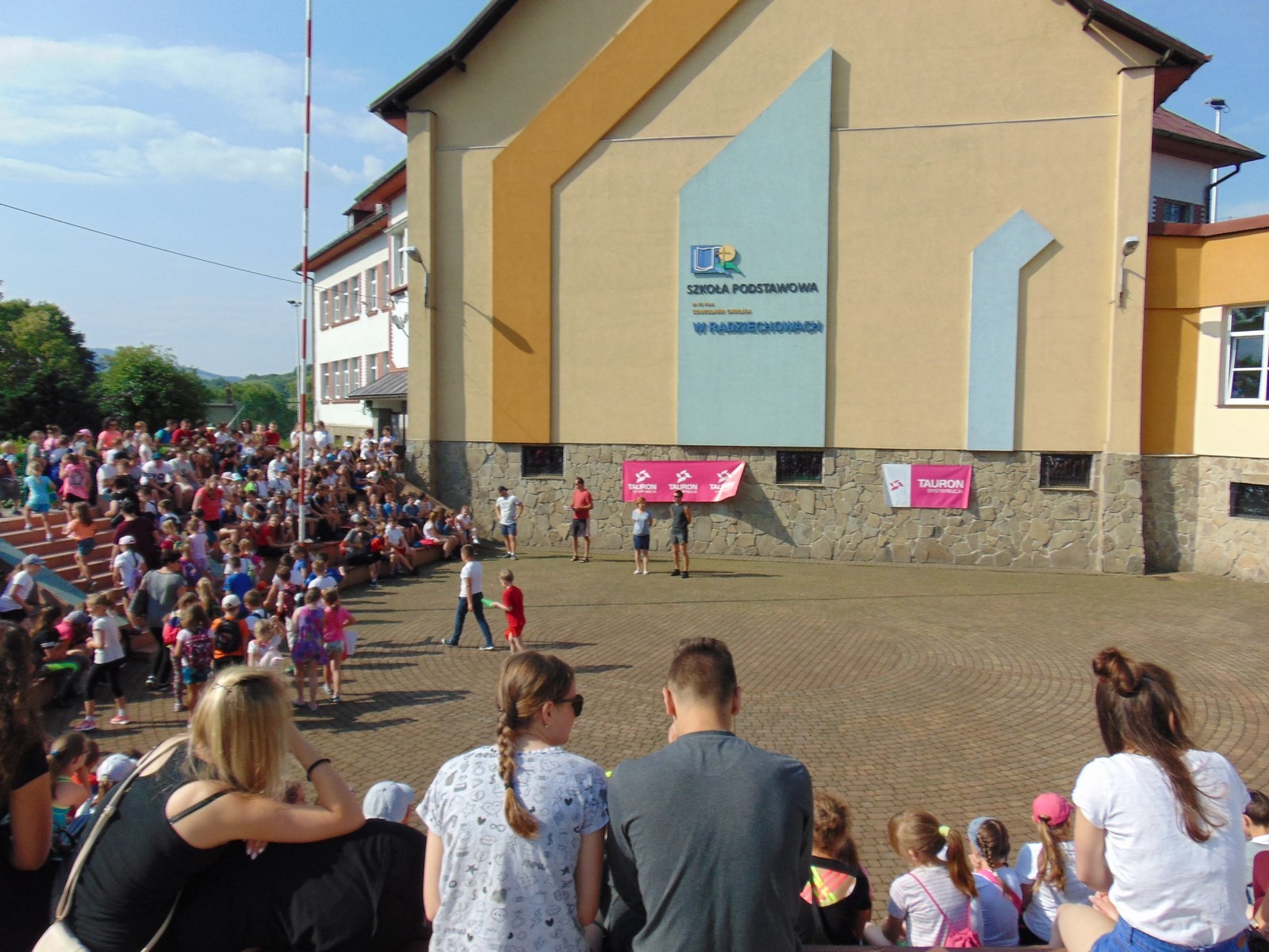 Współorganizatorem imprezy było Gminne Centrum Kultury, Promocji, Turystyki Radziechowy – Wieprz oraz rodzice uczniów i grono pedagogiczne. Świętowanie rozpoczęliśmy punktualnie o godzinie 9.00, kiedy to Pani Dyrektor oficjalnie otwarła zawody.