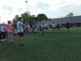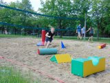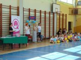 Pogoda dopisała - bezchmurne niebo i piękne słońce wprawiły wszystkich w dobry nastrój. W tym dniu wszystkie klasy miały okazję porównać swoje umiejętności sportowe, uczestnicząc w wielu dyscyplinach. W imprezie sportowej wzięło udział 400 uczniów naszej szkoły. Dzieci między innymi pokonywały dwa tory przeszkód w piasku, rzucały do celu, rzucały na odległość i strzelały do bramki.