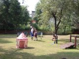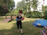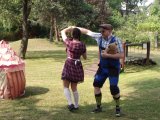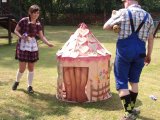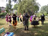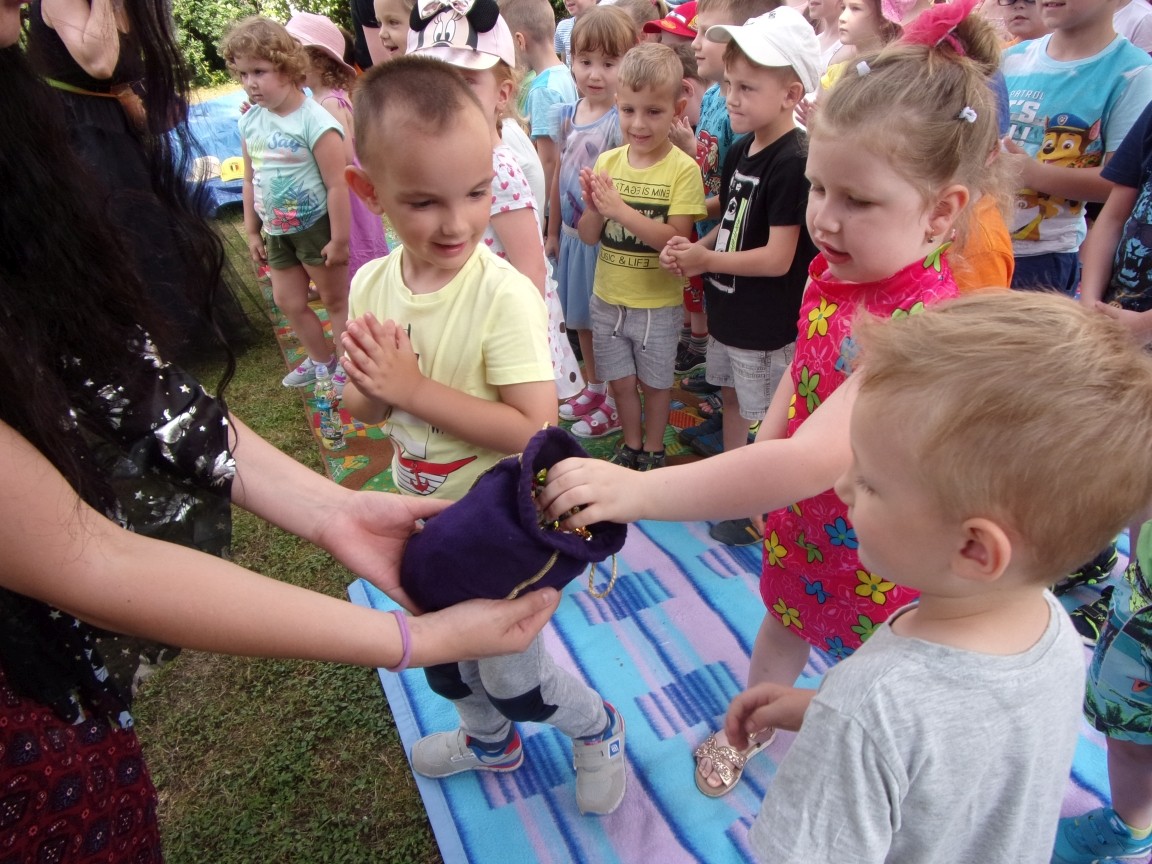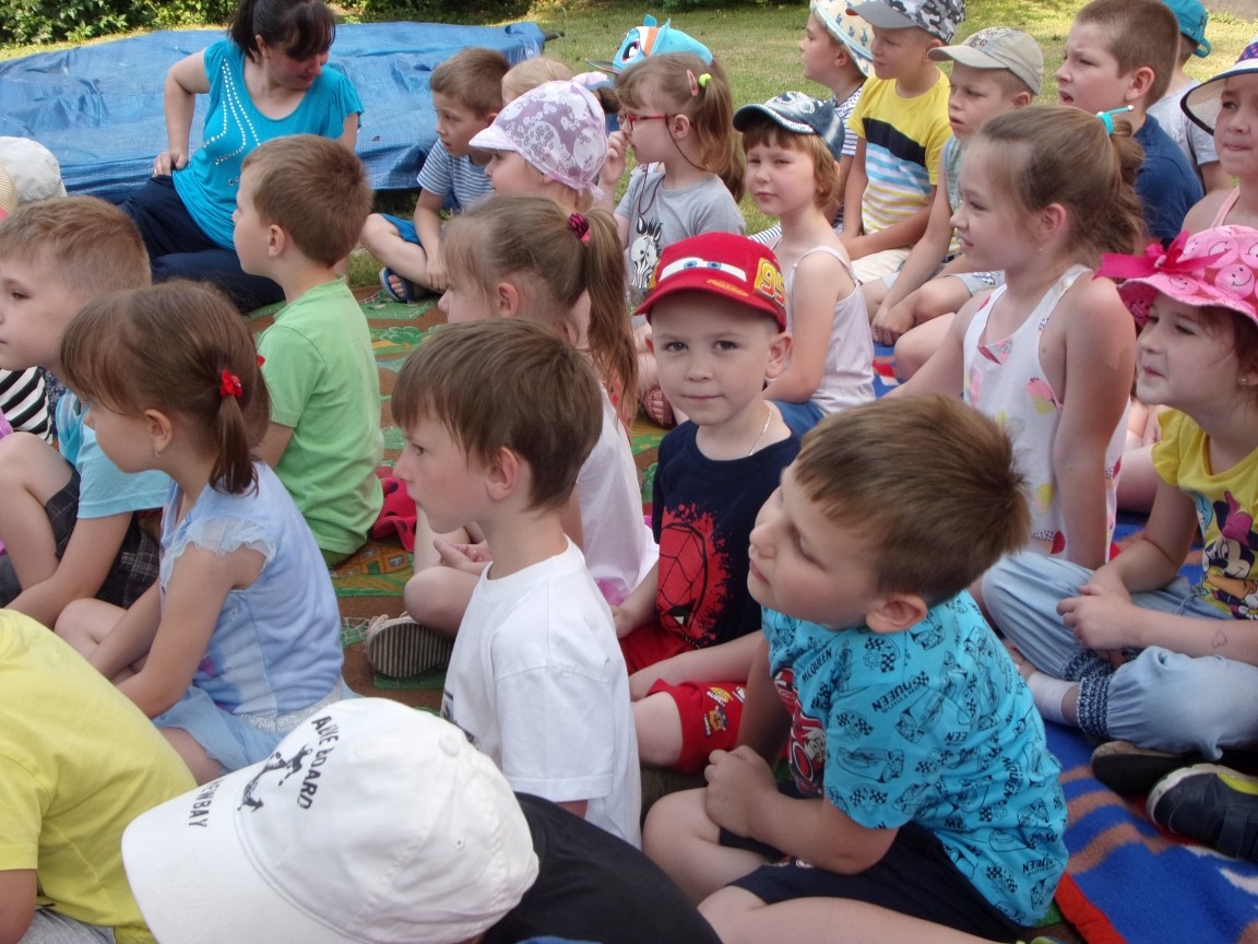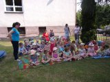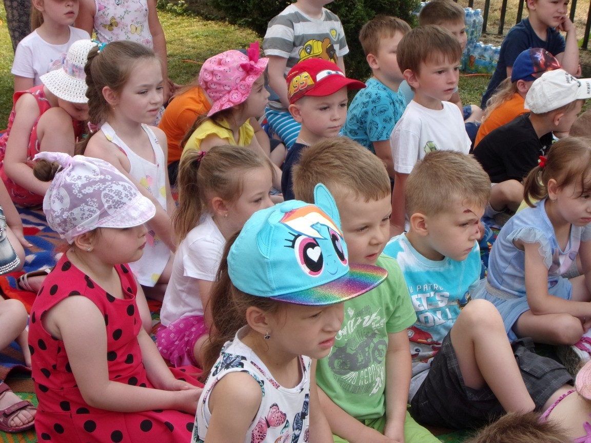 A co działo się później? Tego ani Jan Brzechwa, ani nawet Bracia Grimm nie mogli przewidzieć w swoich wersjach bajki o Jasiu i Małgosi. Nie jedna ale cztery czarownice wirowały w złowrogim tańcu wokół klatki z uwięzionymi głównymi bohaterami bajki. Wilk, który na szczęście okazał się wegetarianinem, drwal, który omal nie unicestwił naszej autentycznej starej jabłoni w ogrodzie przedszkolnym, narrator w barwach rajskiego ptaka i przede wszystkim rewelacyjna kreacja Jasia i Małgosi. Pomyślicie, że to aktualny repertuar Teatru Polskiego w Bielsku- Białej lub przynajmniej Teatru Lalek „Banialuka”? O nie, drodzy Państwo! Takie przedstawienie zostało opracowane i wystawione na placu zabaw przy Przedszkolu im. Władysława Pieronka w Radziechowach. Przedstawienia teatralne dla przedszkolaków przygotowywane wspólnie przez nauczycielki i rodziców wpisały się już w tradycję przedszkola. Pamiętamy rewelacyjne sztuki z lat poprzednich: „Kopciuszek” i „Czerwony Kapturek”. W tym roku przyszedł czas na bajkę pt. „Jaś i Małgosia”. Nie da się opisać radości dzieci i emocji związanych z odnajdywaniem w nietypowej roli swoich pań wychowawczyń i rodziców. Nadal pozostaję pod ogromnym wrażeniem tego wydarzenia i myślę, że podzielicie Państwo moje zdanie po obejrzeniu fotorelacji.