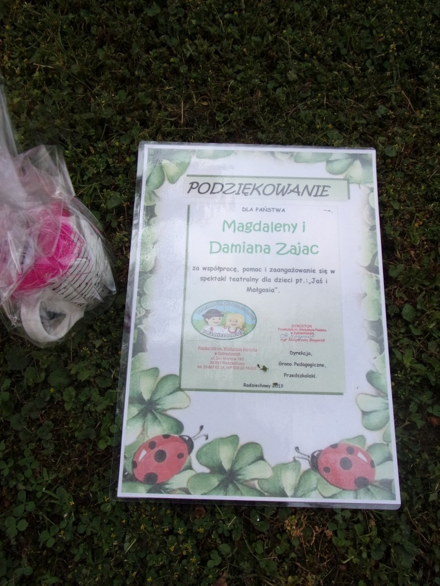 Z całego serca dziękuję pomysłodawcom i realizatorom pomysłu przedstawienia. Świadomość tego, że w Przedszkolu im. Władysława Pieronka w Radziechowach podejmowane są tego rodzaju inicjatywy, napawa mnie dumą. Serdecznie gratuluję!