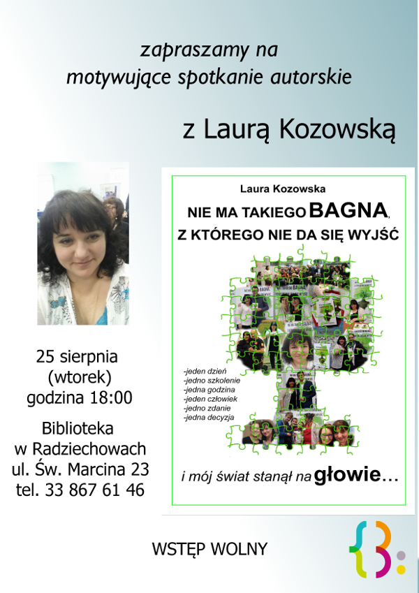 Zapraszamy na motywacyjne spotkanie autorskie z Laurą Kozowską autorką książki "Nie ma takiego bagna, z którego nie da się wyjść".