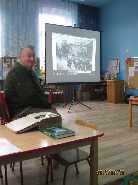 Spotkanie poświęcone było postaci jego ojca Franciszka Ozimińskiego- byłego dyrektora szkoły (w latach 1947- 1972) i kronikarza Radziechów. Pan Andrzej przybliżył dzieciom postać kronikarza i zaprezentował jego dorobek. Pan Franciszek Ozimiński (1909-1987) jest autorem wielu kronik wsi Radziechowy. Napisał też kroniki OSP, szkoły, przedszkola, koła gospodyń oraz kronikę Przybędzy. Spotkanie dopełniły wspomnienia o życiu w Radziechowach w dawnych czasach ilustrowane zdjęciami zaczerpniętymi z kronik. Ciekawostką dla dzieci była informacja, że Pan Franciszek sam wykonywał i wywoływał zdjęcia do kroniki, własnoręcznie też ozdabiał je ornamentami i ilustracjami. Była to sympatyczna i wzruszająca wycieczka po dziejach naszej miejscowości. Poznawanie kronik naszej miejscowości jest ważnym elementem realizowanego przez Publiczne Przedszkole w Radziechowach projektu p.n. „Tu mieszkał dziadek, tu mieszkam ja…-Radziechowy w rodzinnym albumie”. Bardzo dziękujemy Panu Andrzejowi za włączenie się w edukację regionalną najmłodszych radziechowian i zapraszamy ponownie.