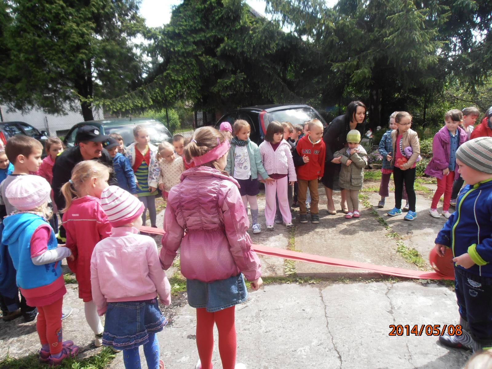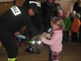 Pokaz ratowniczy w wykonaniu naszych strażaków na długo pozostanie w pamięci małych widzów. Dodatkową atrakcją była możliwość przymierzenia strażackiego umundurowania, zdjęcia w strażackich hełmach oraz pokaz sprzętu używanego w akcjach ratowniczych. Uzupełnieniem spotkania była opowieść o historii OSP w Radziechowach, prezentacja sztandarów, dyplomów i pucharów. Dzieci w podzięce zaśpiewały naszym przyjaciołom piosenkę o dzielnych strażakach oraz wręczyły pamiątkową laurkę. Strażacy obdarowali swoich gości słodyczami, pożegnali sygnałem syreny i … pojechali strażackim samochodem do przedszkola przy ul. Głównej. A tam czekały już podekscytowane wydarzeniem przedszkolaki ze swoimi wychowawczyniami.