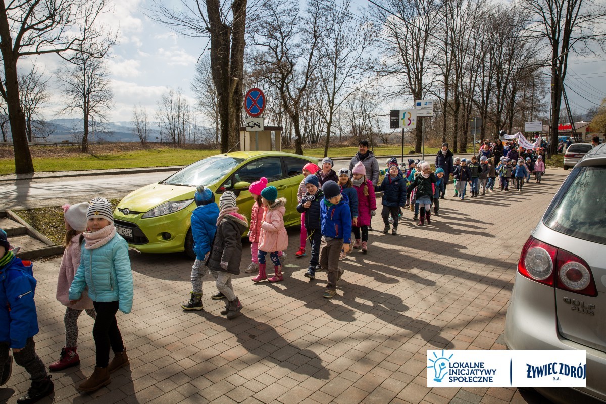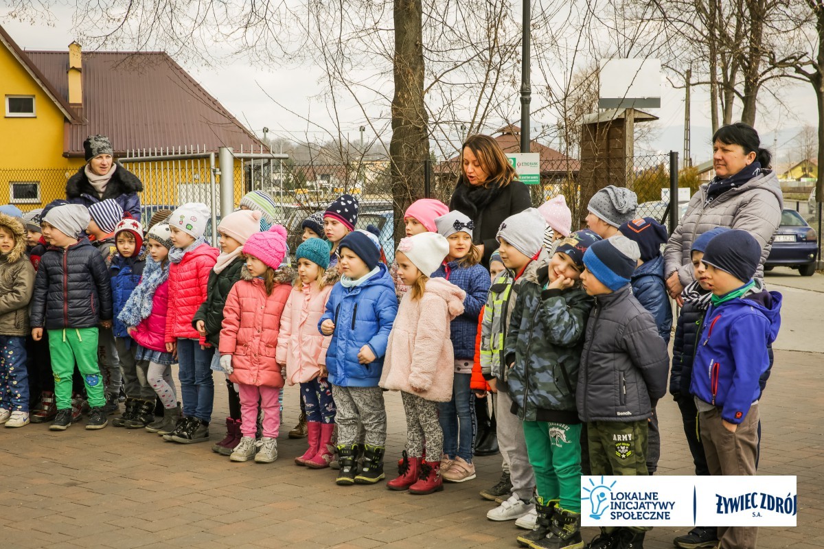 Dzięki współpracy pomiędzy placówkami oświatowymi z terenu gminy do happeningu przyłączyły się przedszkolaki z Publicznego Przedszkola im. Wł. Pieronka w Radziechowach.