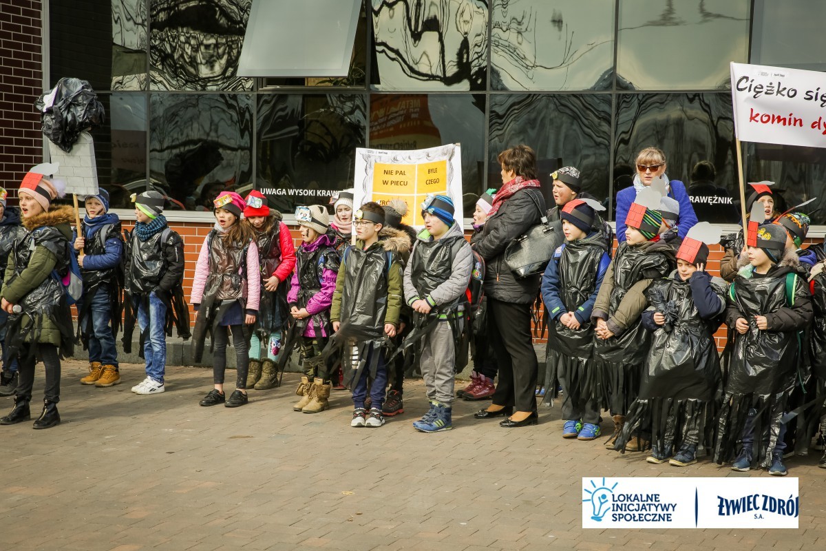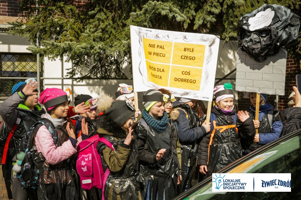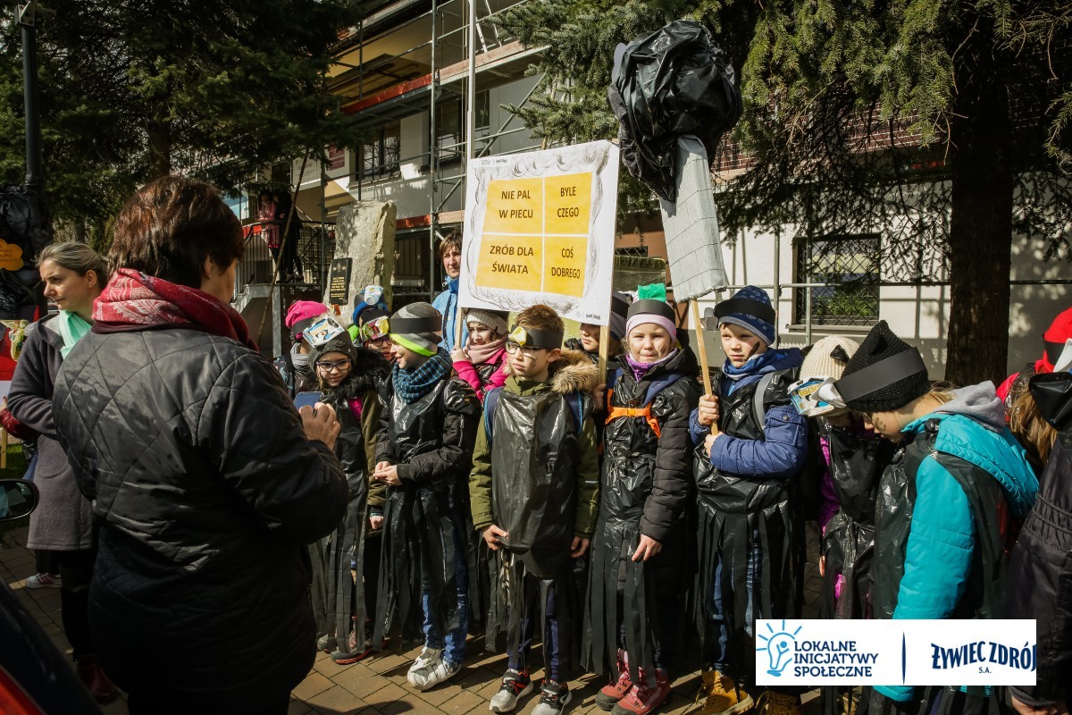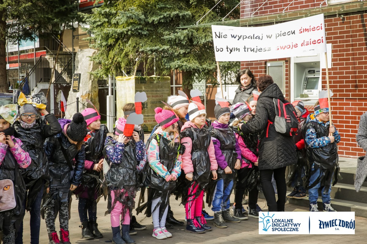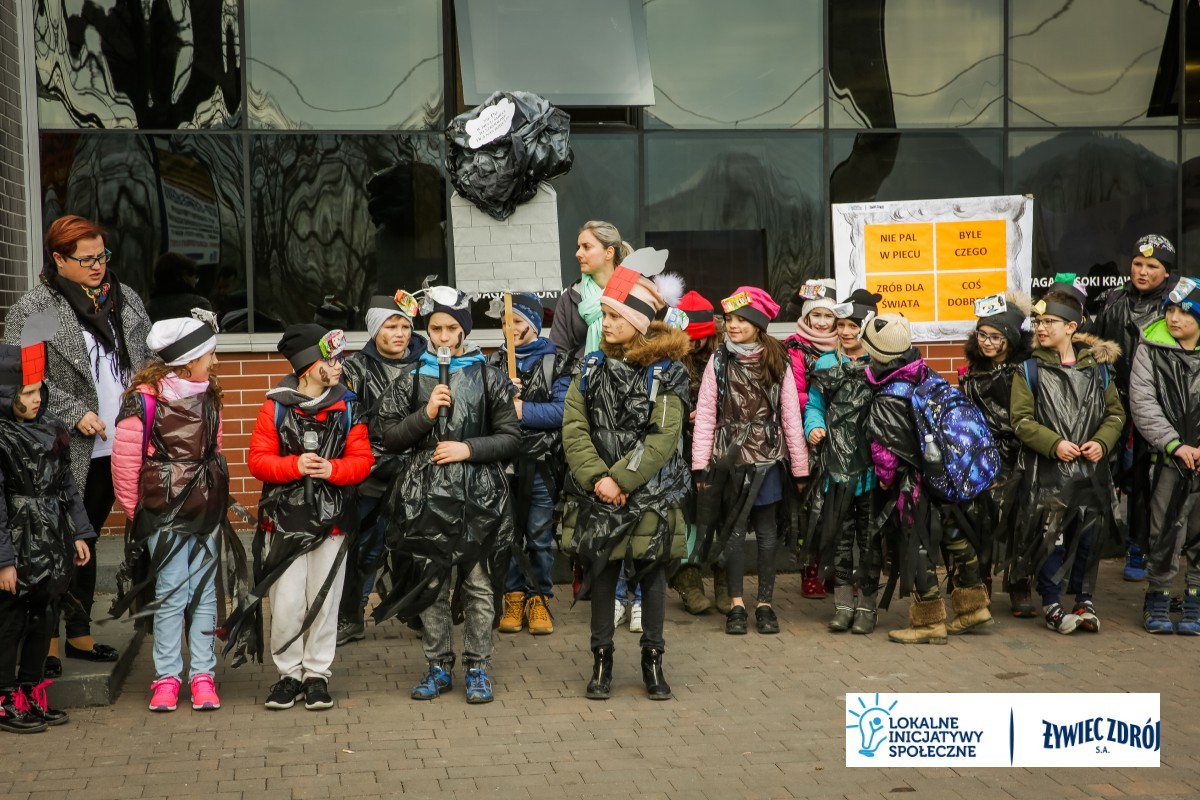 Podczas happeningu uczniowie przebrani w stroje przypominające dymiące kominy lub wysypiska śmieci, przeszli główną ulicą miejscowości. Dzieci niosły plakaty i transparenty, śpiewały piosenki oraz wykrzykiwały hasła, nawołujące do zaprzestania spalania śmieci w piecach domowych. Barwny korowód zainteresował mieszkańców wsi. Na zakończenie happeningu uczniowie wraz z przedszkolakami udali się do Urzędu Gminy Radziechowy –Wieprz. Dzieci przedstawiły krótki program artystyczny, w którym zachęcały mieszkańców i pracowników gminy do ekologicznego trybu życia.