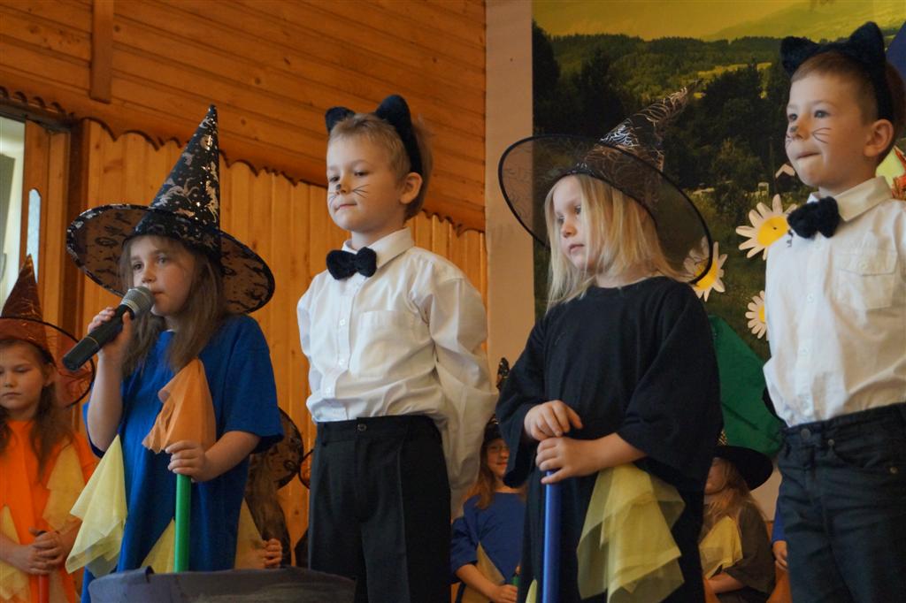 Grupa „Krasnoludki”, do której uczęszczają dzieci od 3 do 5 lat zatańczyła taniec z chustkami oraz taniec z pomponami, recytowała wiersze, a także zaśpiewała kilka piosenek. Z kolei grupa starszaków (która nosi nazwę: Przyjaciele Franklina) przedstawiła… spektakl muzyczny pt. „Czarownice i koty”. Rodzicom zaimponowali nie tylko świetną grą aktorską, śpiewem, ale również efektownymi kostiumami, które były autorskim projektem pań wychowawczyń.