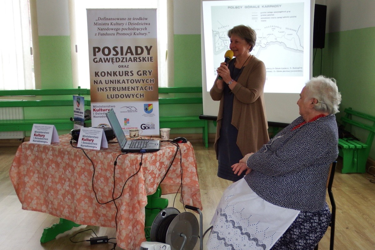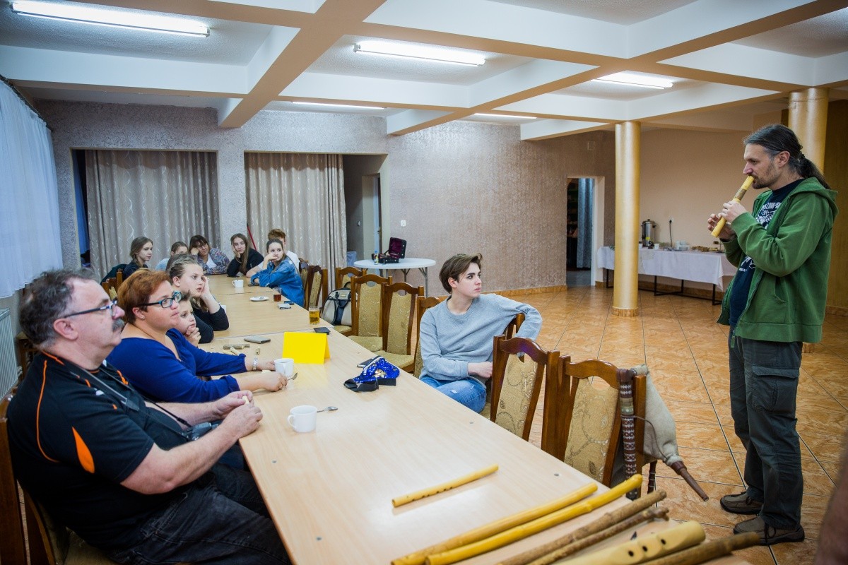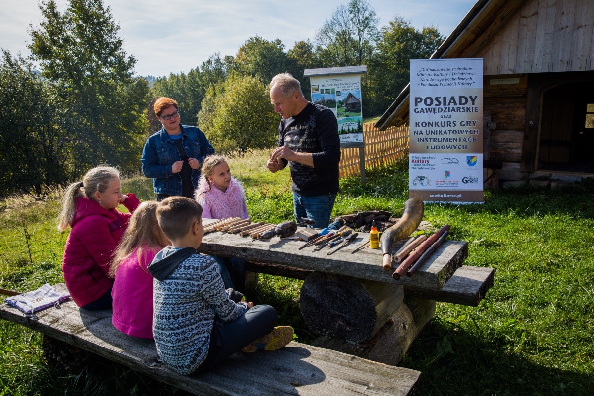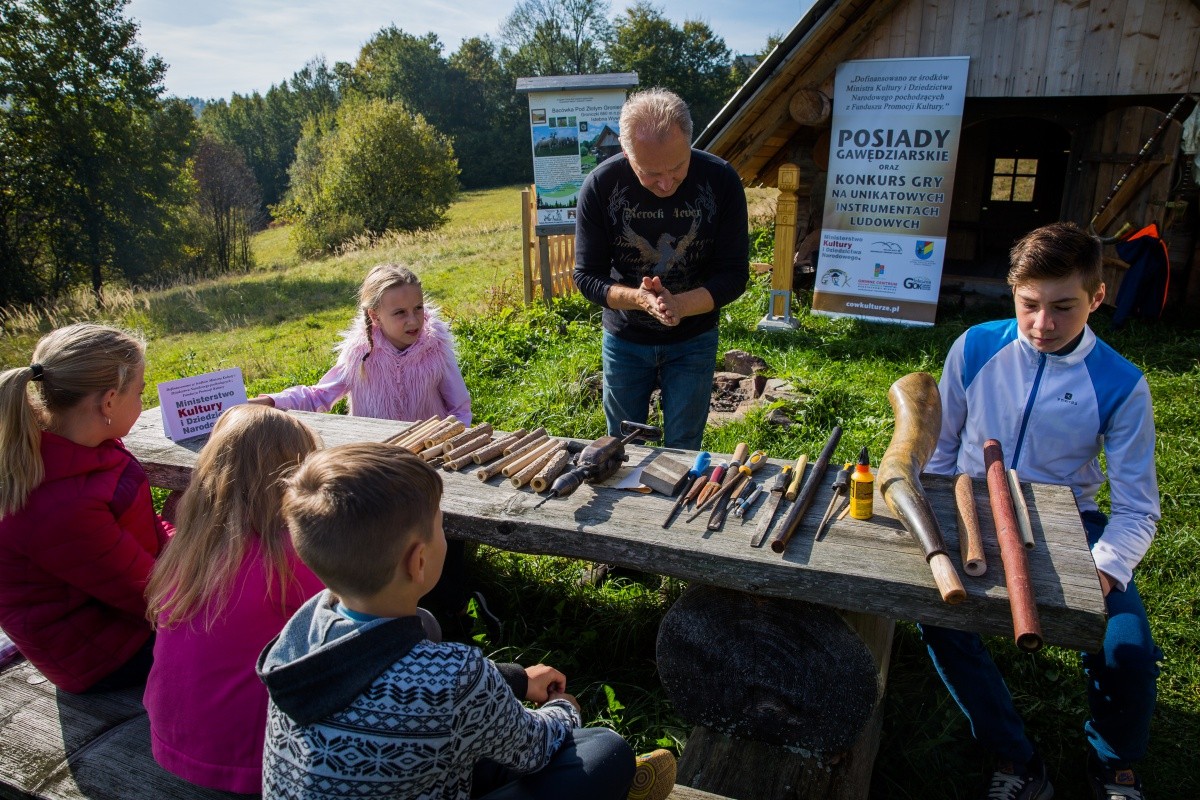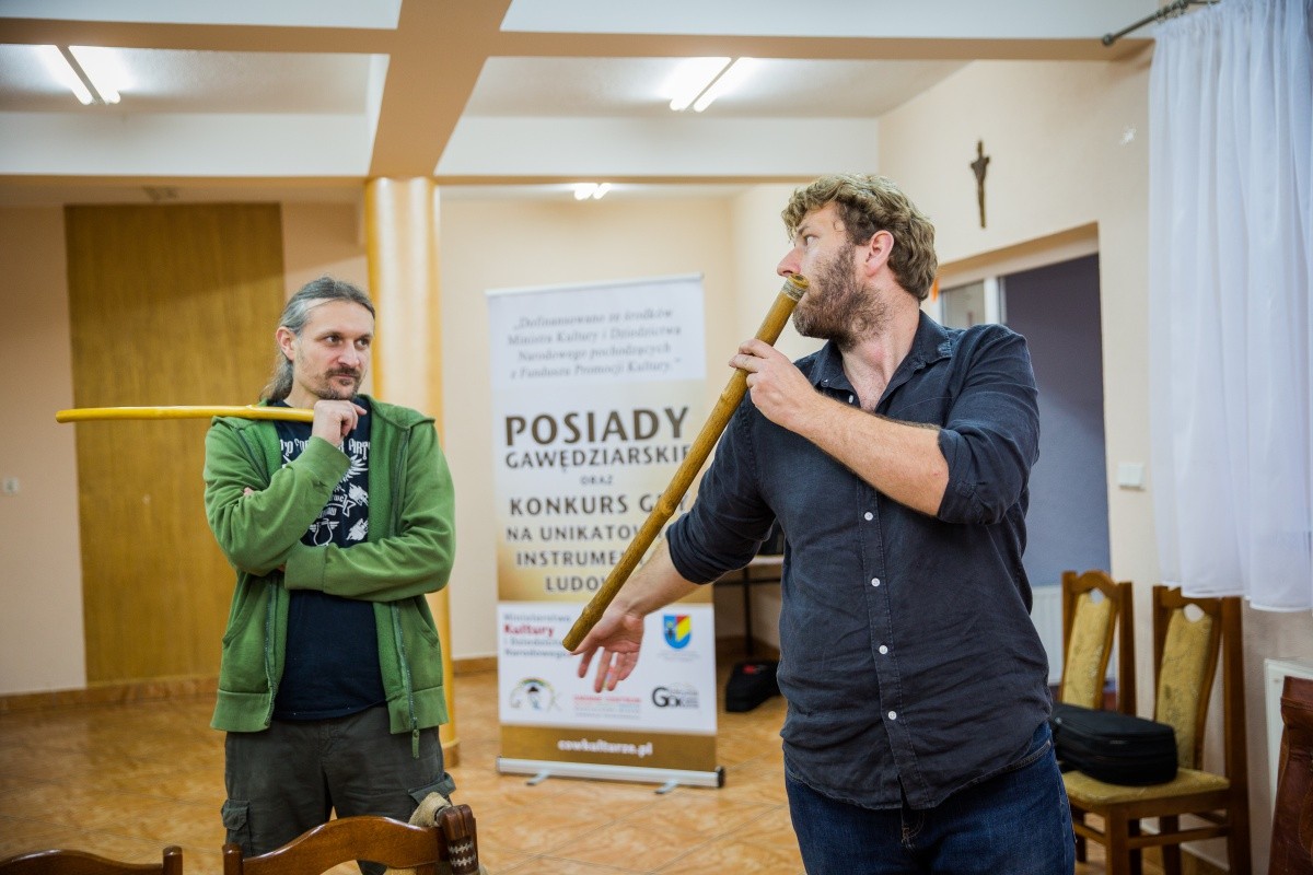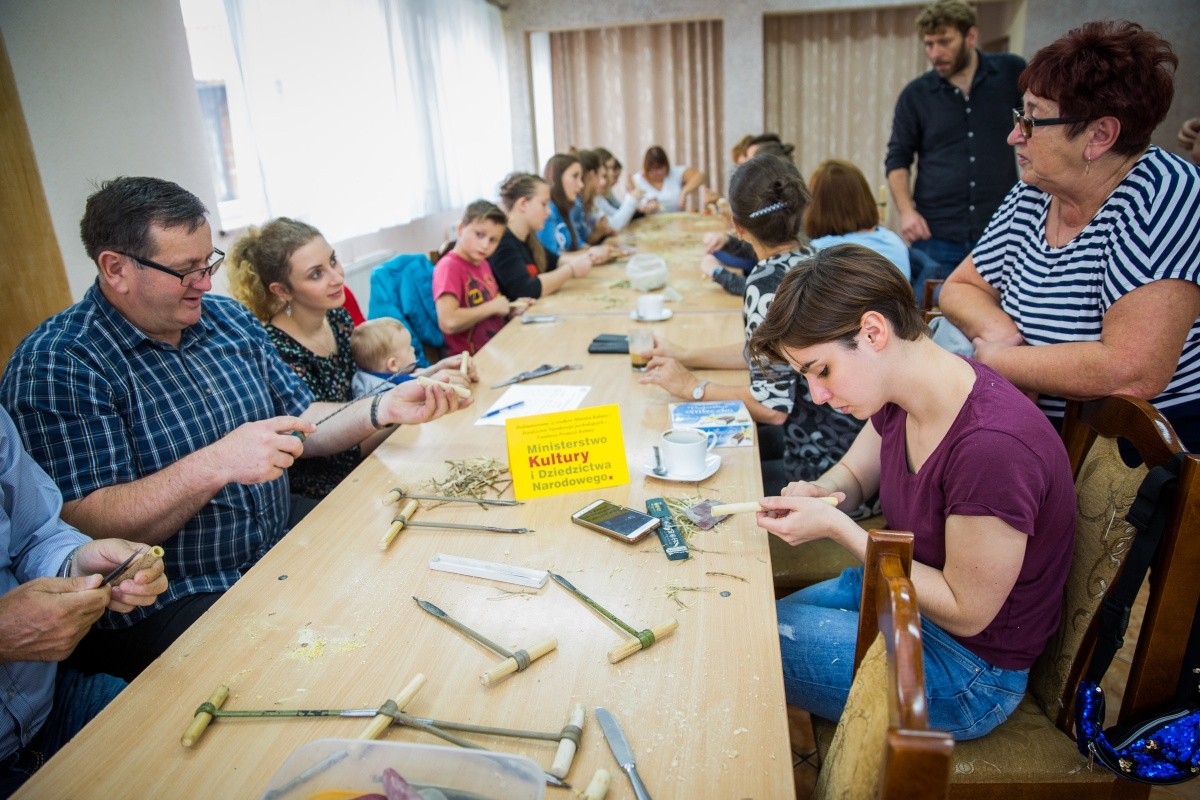 Warsztaty te kierowane były do uczestników konkursu oraz do wszystkich osób chcących wziąć udział w tym przedsięwzięciu, w celu podniesienia świadomości dzieci, młodzieży i osób dorosłych kultywujących lokalne tradycje słowno-muzyczne. W sumie w warsztatach wzięło udział 96 osób. Warsztaty gwary i zachowania scenicznego dla gawędziarzy prowadzone były przez Panie Barbarę Rosiek i Walerię Prochownik oraz przez Pana Eugeniusza Jachyma, natomiast warsztaty z budowy unikatowych instrumentów ludowych i muzyki ludowej, przez Pana Zbigniewa Wałacha oraz Panów Marcina Blachury i Przemysława Ficka. Warsztaty były bardzo owocne, poznaliśmy tajniki powstawania instrumentów ludowych oraz poszerzyliśmy wiedzę aktorską. Liczymy, że w przyszłości wykorzystamy tę wiedzę i będziemy szerzyć ją dalej. Wszystkich serdecznie zachęcamy do wzięcia udziału w XXVII Posiadach Gawędziarskich oraz XXIX Konkursie Gry na Unikatowych Instrumentach Ludowych.