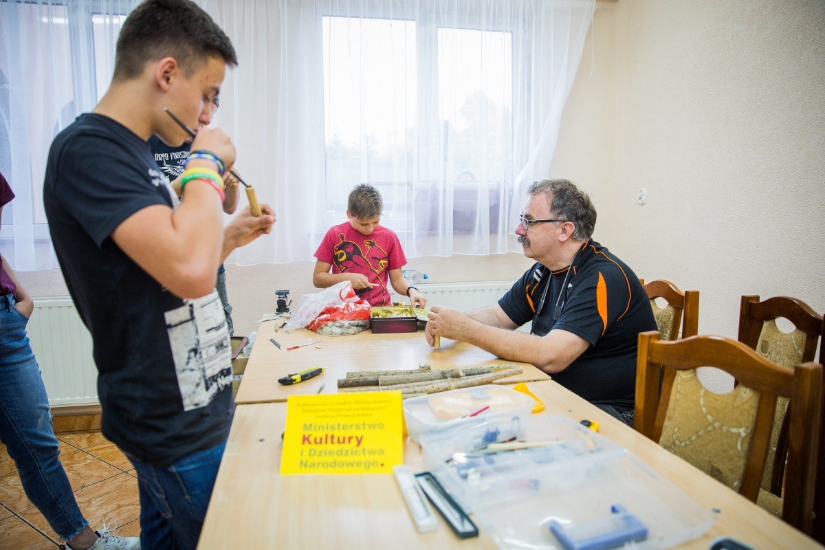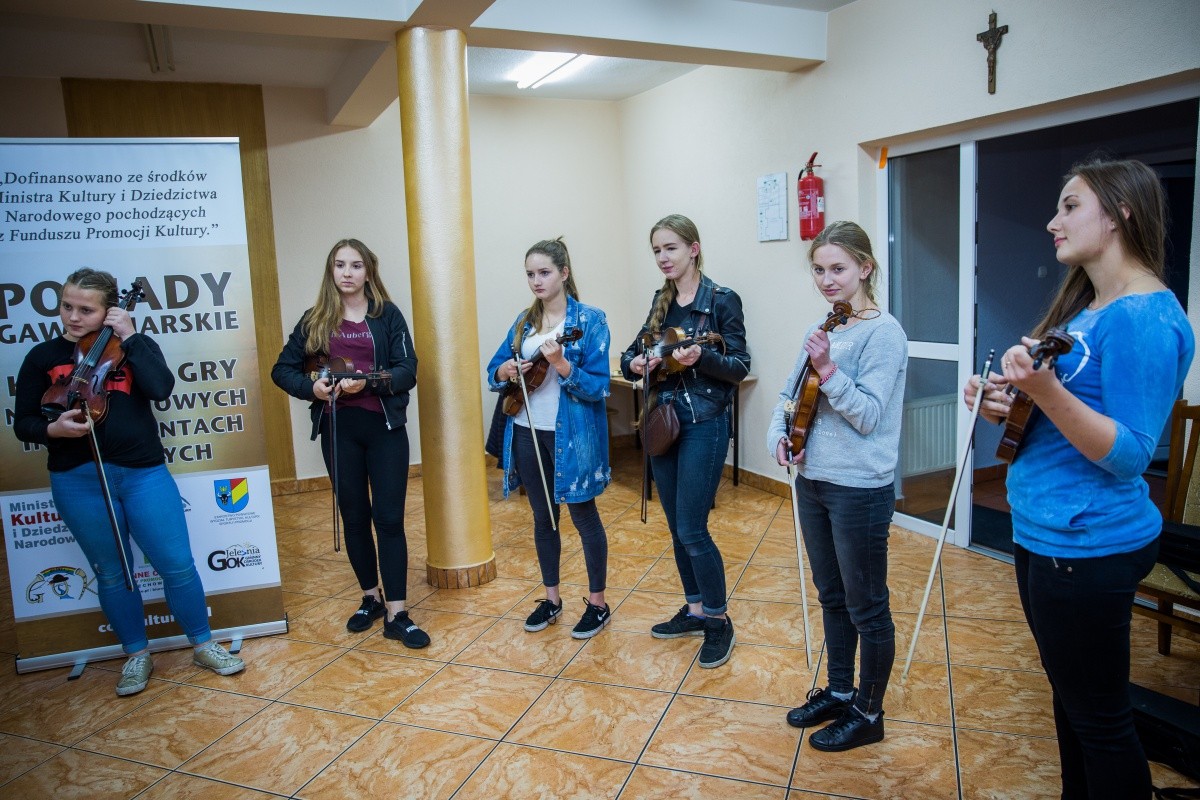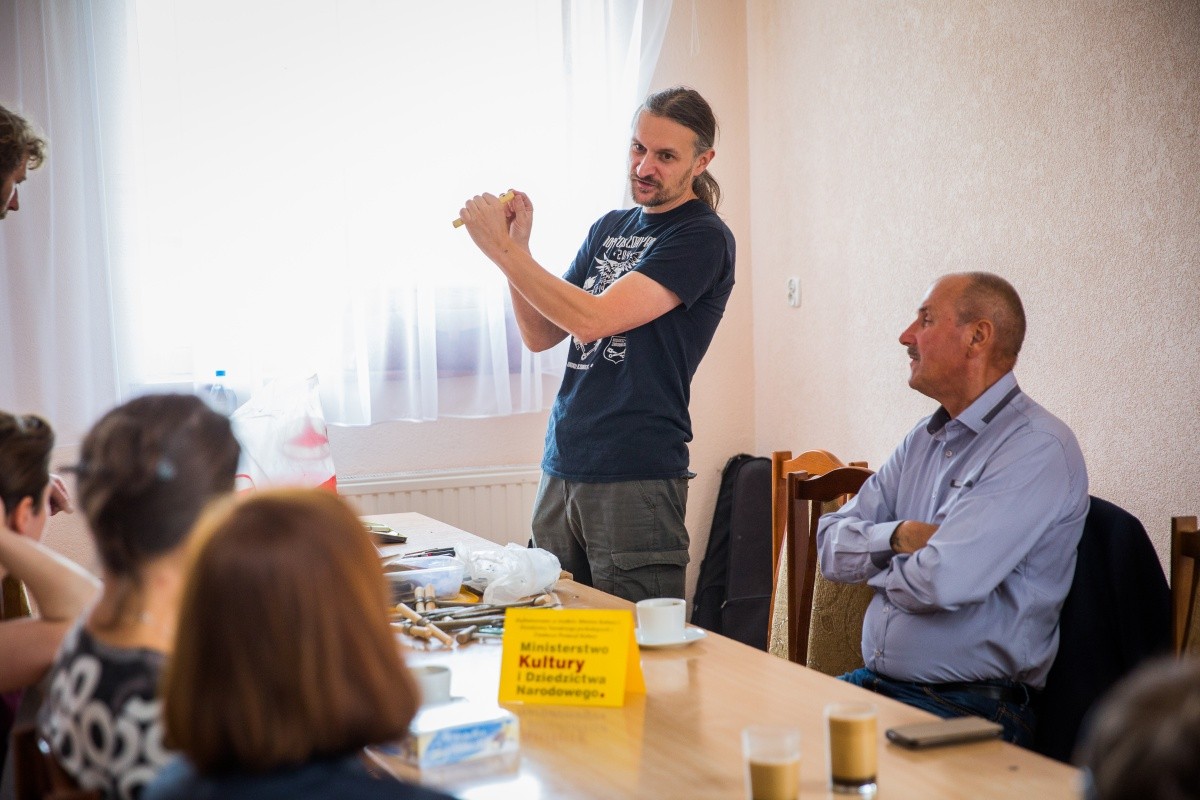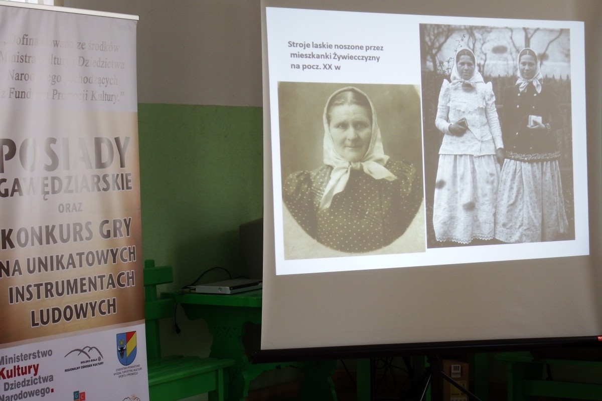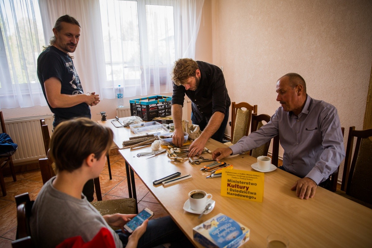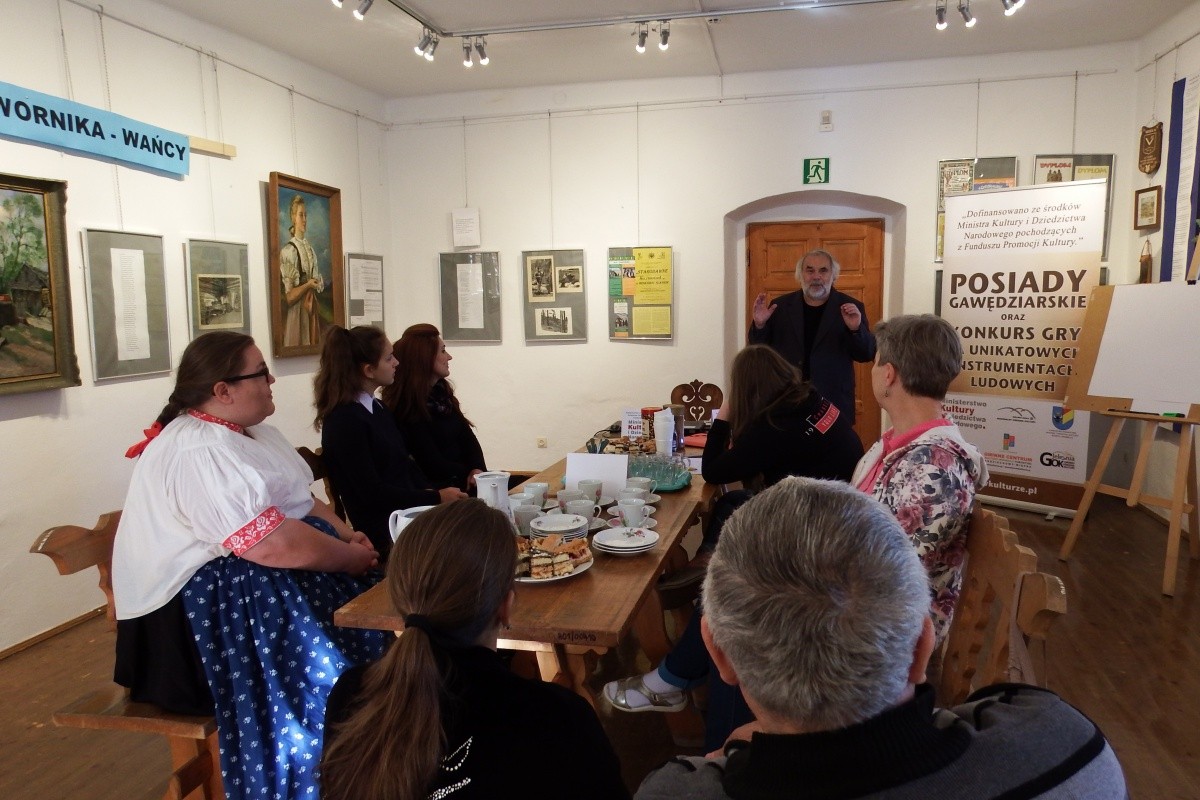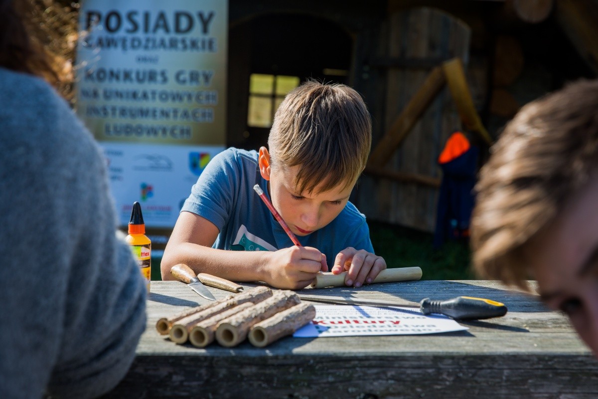 Warsztaty te kierowane były do uczestników konkursu oraz do wszystkich osób chcących wziąć udział w tym przedsięwzięciu, w celu podniesienia świadomości dzieci, młodzieży i osób dorosłych kultywujących lokalne tradycje słowno-muzyczne. W sumie w warsztatach wzięło udział 96 osób. Warsztaty gwary i zachowania scenicznego dla gawędziarzy prowadzone były przez Panie Barbarę Rosiek i Walerię Prochownik oraz przez Pana Eugeniusza Jachyma, natomiast warsztaty z budowy unikatowych instrumentów ludowych i muzyki ludowej, przez Pana Zbigniewa Wałacha oraz Panów Marcina Blachury i Przemysława Ficka. Warsztaty były bardzo owocne, poznaliśmy tajniki powstawania instrumentów ludowych oraz poszerzyliśmy wiedzę aktorską. Liczymy, że w przyszłości wykorzystamy tę wiedzę i będziemy szerzyć ją dalej. Wszystkich serdecznie zachęcamy do wzięcia udziału w XXVII Posiadach Gawędziarskich oraz XXIX Konkursie Gry na Unikatowych Instrumentach Ludowych.