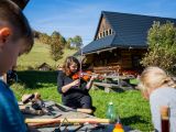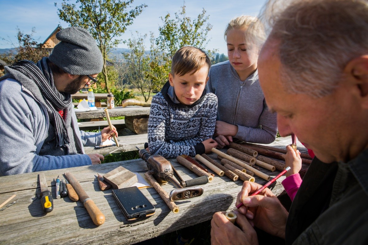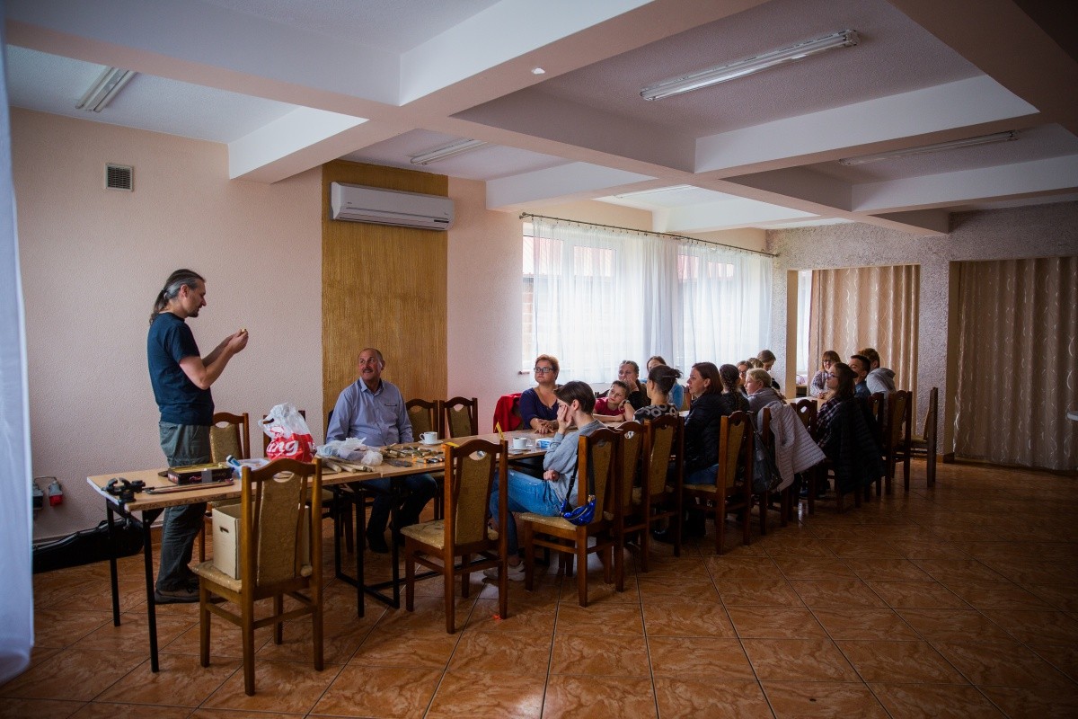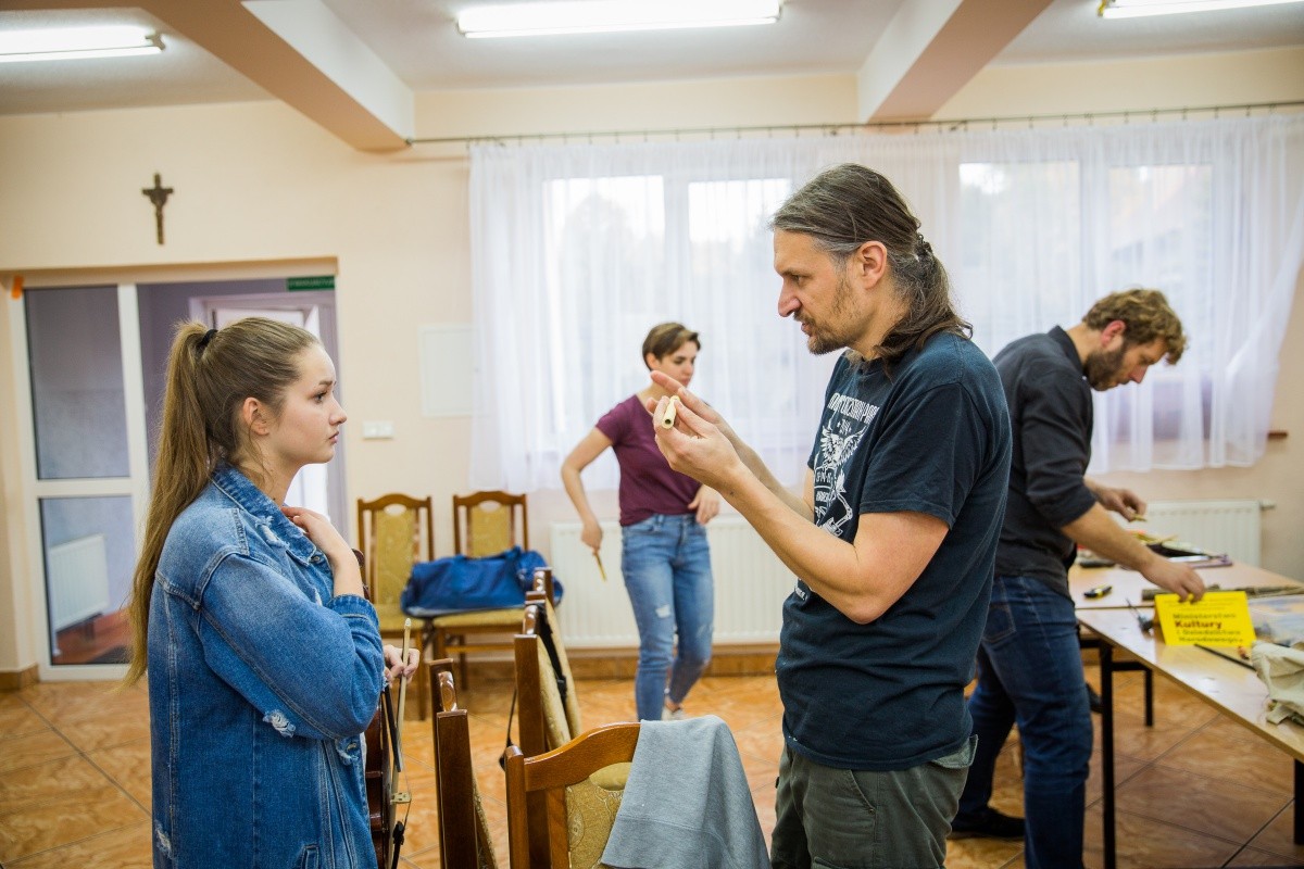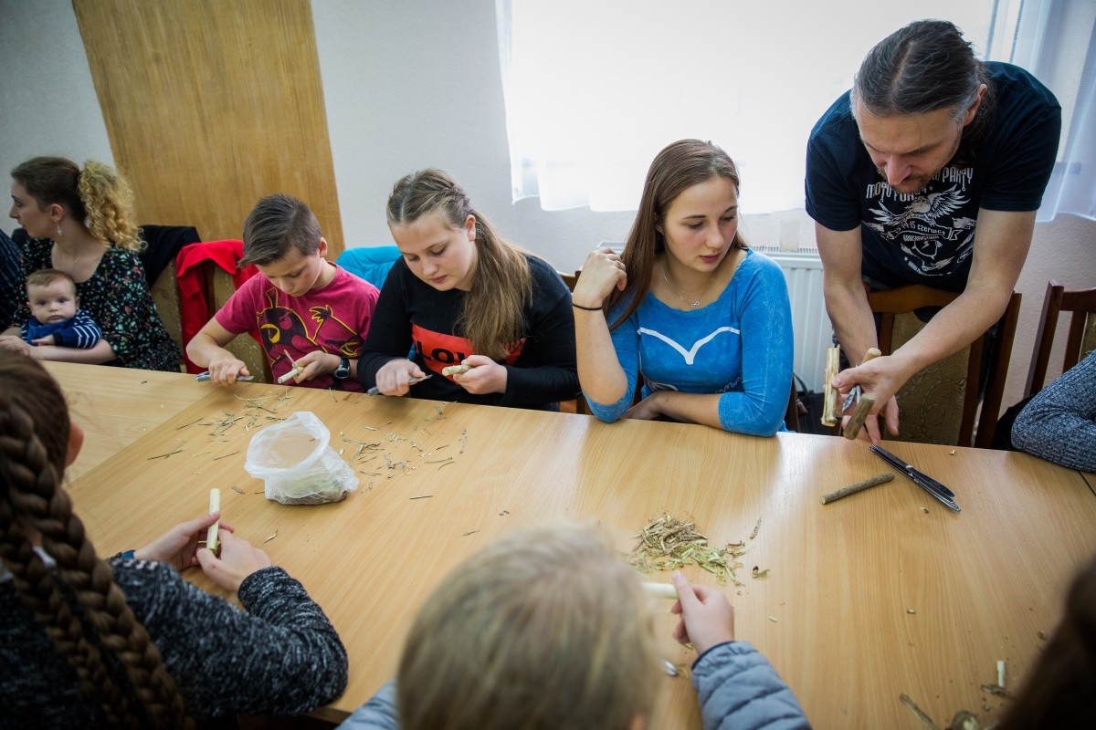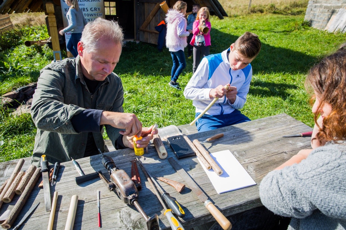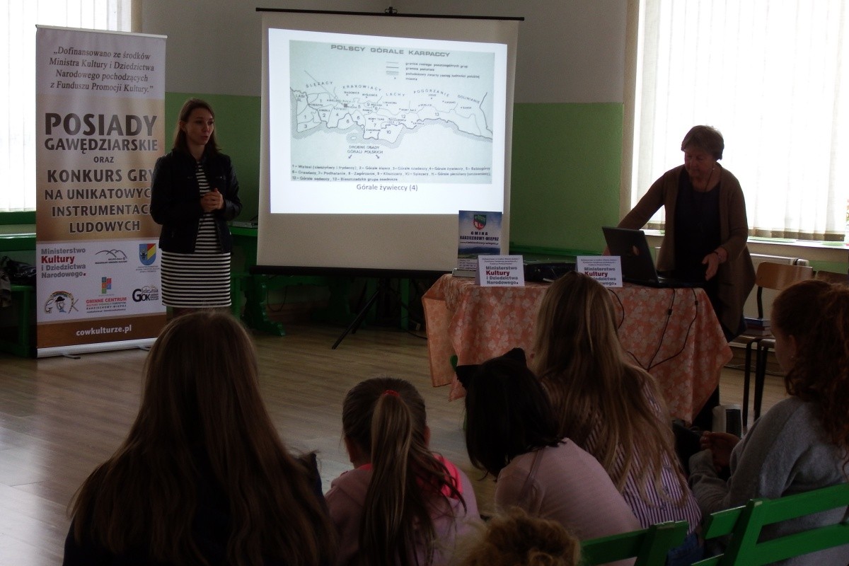 Warsztaty te kierowane były do uczestników konkursu oraz do wszystkich osób chcących wziąć udział w tym przedsięwzięciu, w celu podniesienia świadomości dzieci, młodzieży i osób dorosłych kultywujących lokalne tradycje słowno-muzyczne. W sumie w warsztatach wzięło udział 96 osób. Warsztaty gwary i zachowania scenicznego dla gawędziarzy prowadzone były przez Panie Barbarę Rosiek i Walerię Prochownik oraz przez Pana Eugeniusza Jachyma, natomiast warsztaty z budowy unikatowych instrumentów ludowych i muzyki ludowej, przez Pana Zbigniewa Wałacha oraz Panów Marcina Blachury i Przemysława Ficka. Warsztaty były bardzo owocne, poznaliśmy tajniki powstawania instrumentów ludowych oraz poszerzyliśmy wiedzę aktorską. Liczymy, że w przyszłości wykorzystamy tę wiedzę i będziemy szerzyć ją dalej. Wszystkich serdecznie zachęcamy do wzięcia udziału w XXVII Posiadach Gawędziarskich oraz XXIX Konkursie Gry na Unikatowych Instrumentach Ludowych.