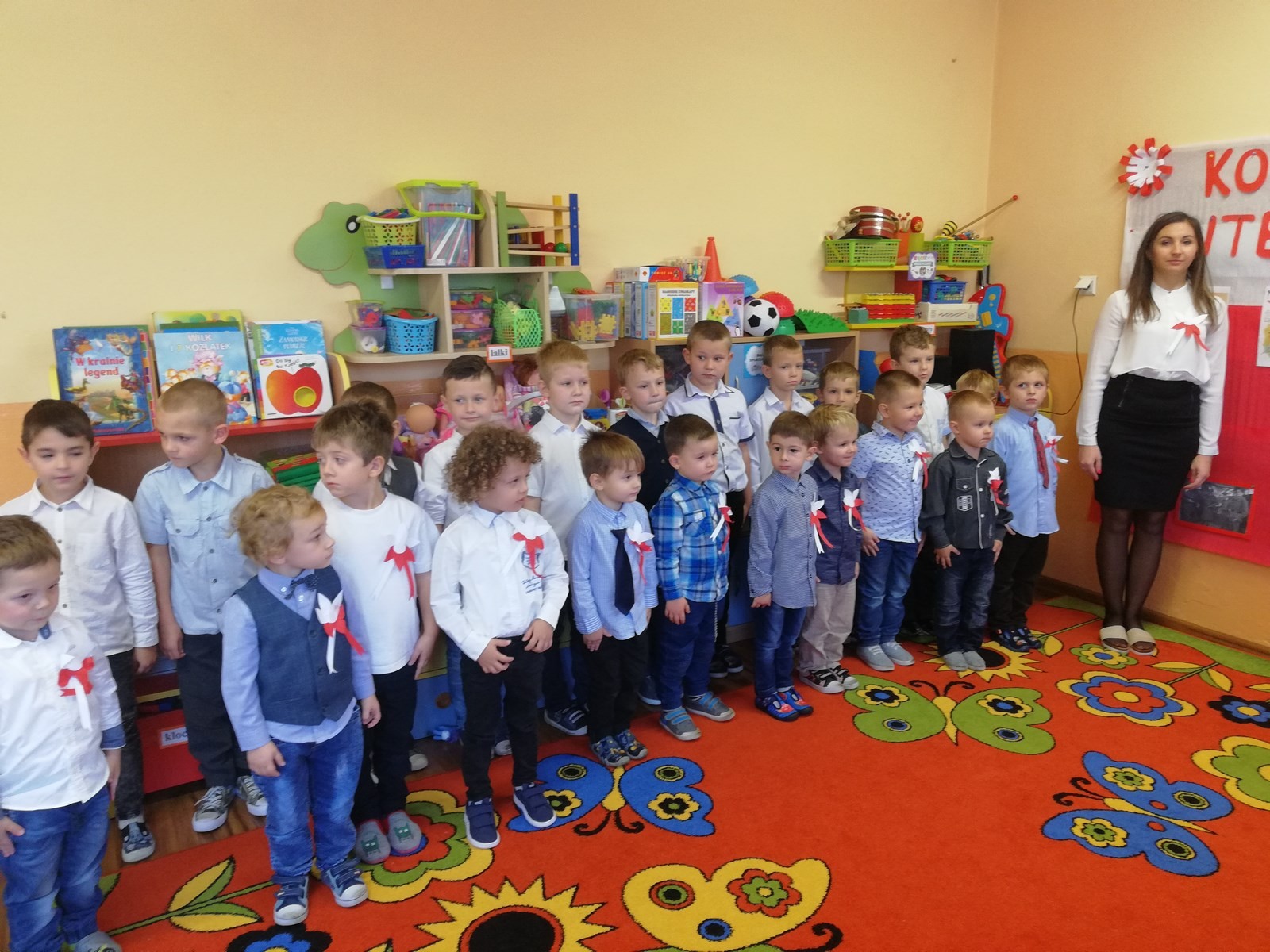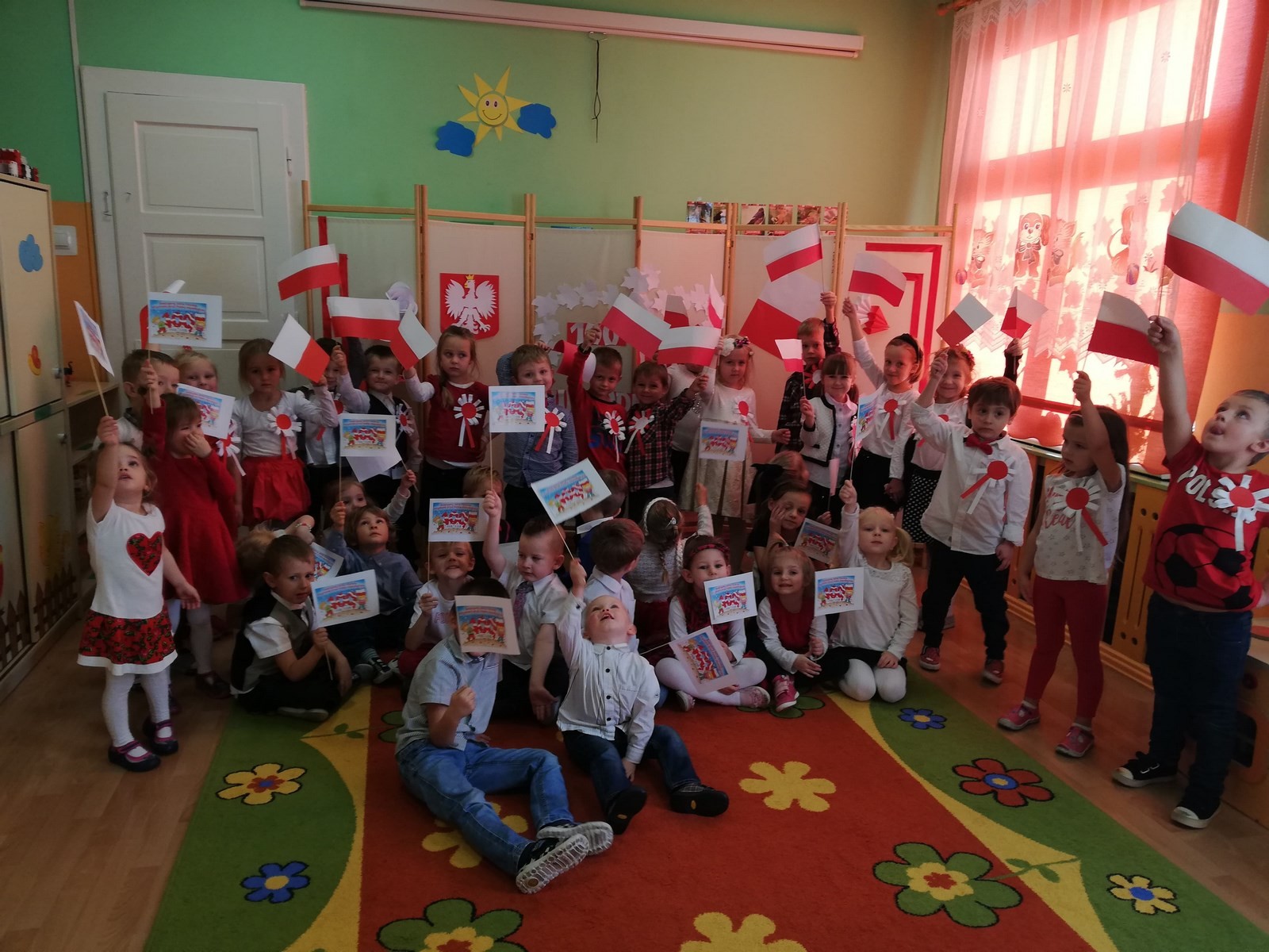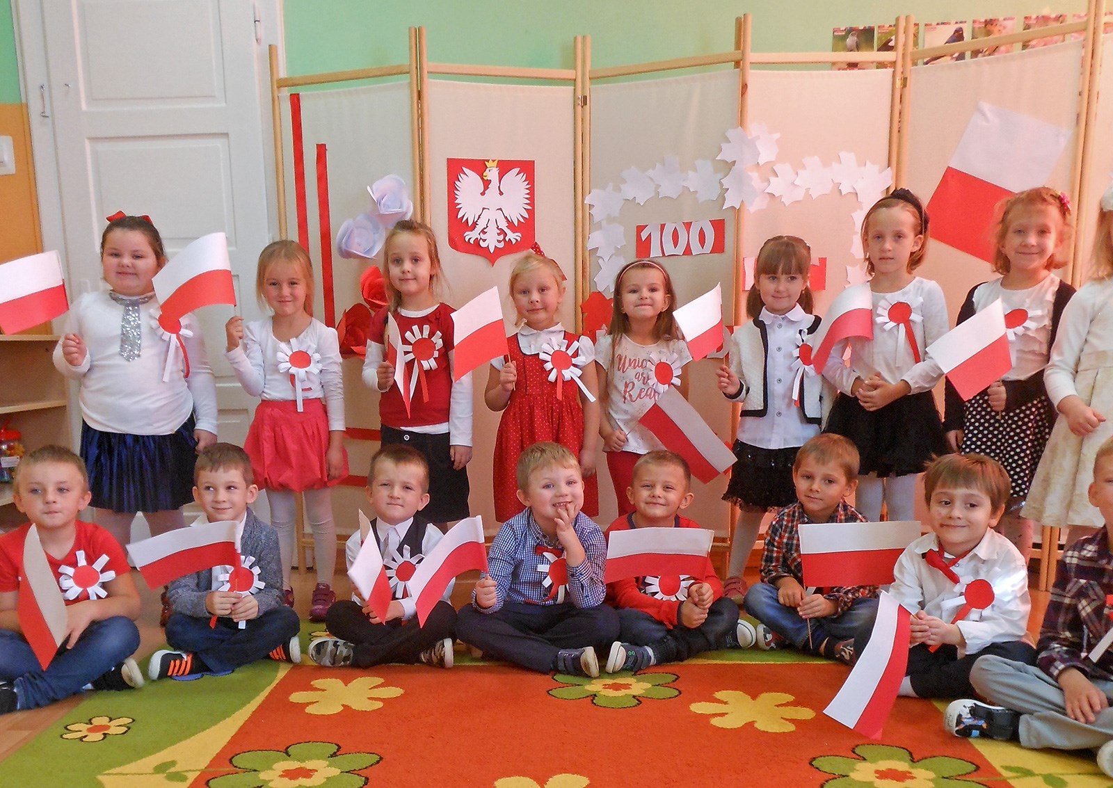 W czasie „patriotycznych poranków” czytelniczych rodzice czytali przedszkolakom wybrane legendy polskie oraz poezję polskich autorów o tematyce patriotycznej. Na zajęciach muzycznych nauczyły się hymnu narodowego, piosenek o Polsce oraz tańców ludowych naszego regionu, a na zajęciach artystycznych wykonały z wychowawczyniami symbole narodowe: min. biało-czerwone chorągiewki, orła w koronie, kotyliony oraz wiele prac plastycznych, które zawisły w galerii dla rodziców. Odświętnie zostały również przystrojone sale zajęć oraz korytarze.