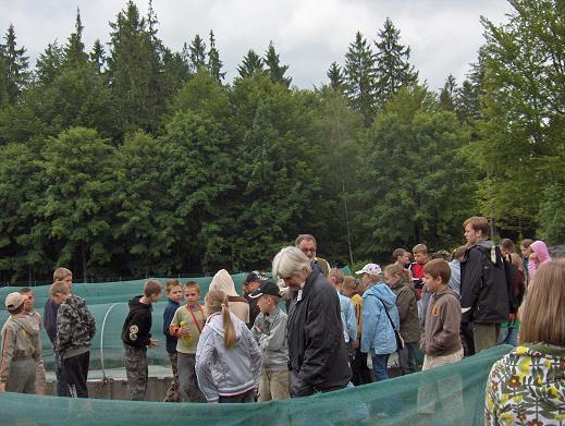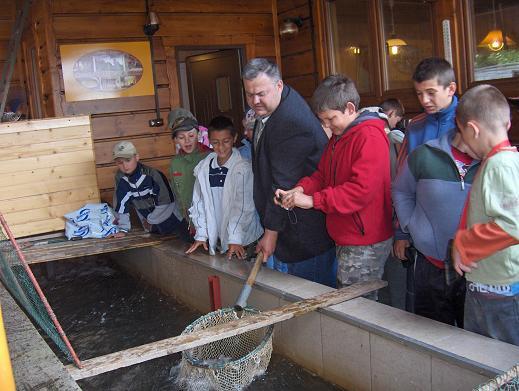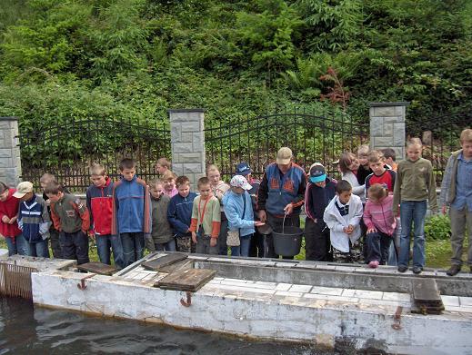 Następnie udaliśmy się do ośrodka rozmnażania pstrąga znajdującego się w Rezerwacie Wisła-Czarne. Mogliśmy nie tylko zobaczyć miejsca kolejnych etapów rozwoju tych ryb, ale także uczestniczyliśmy w ich karmieniu.
