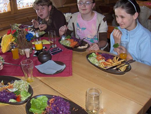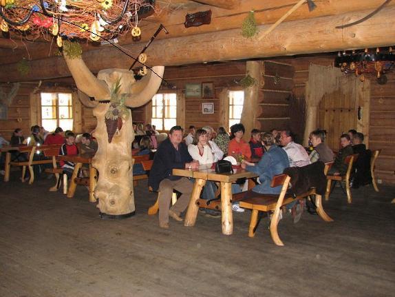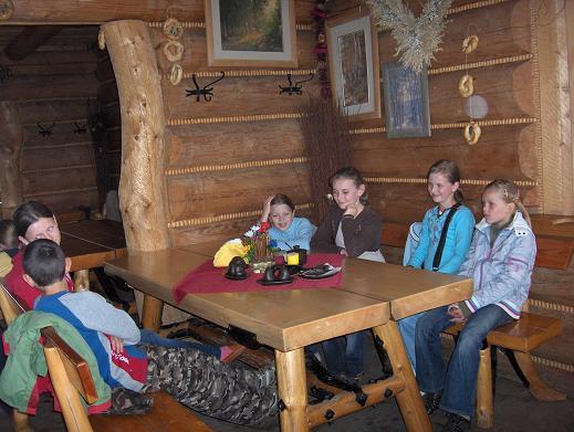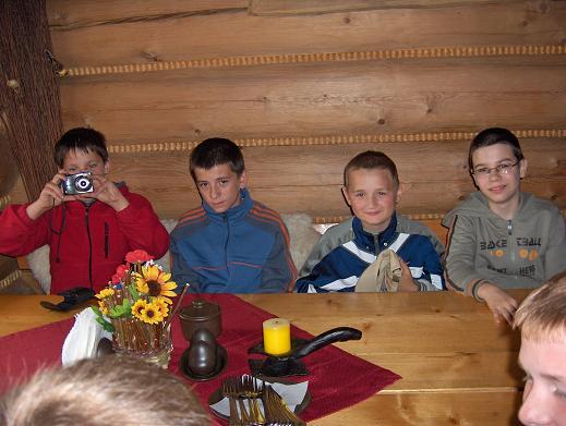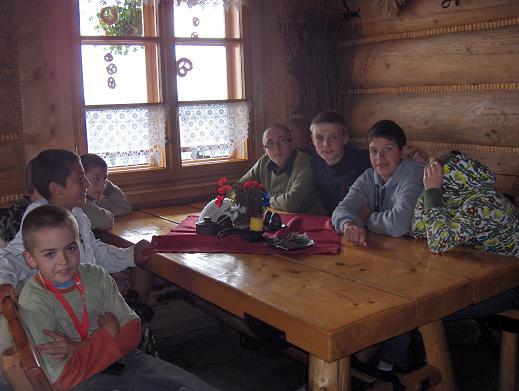 Kolejnym punktem wyprawy była Karczma na Ochodzitej, gdzie uraczono nas iście królewskim obiadem. Po uczcie dla ciała, udaliśmy się na pobliski punkt widokowy. Widok zapierał dech w piersiach, a wspaniała pogoda umożliwiła nam dostrzec nawet na horyzoncie szczyty Tatr. Pan Juźwa zorganizował tutaj krótki konkurs z orientacji w terenie i niektórym udało się zdobyć cenne nagrody.