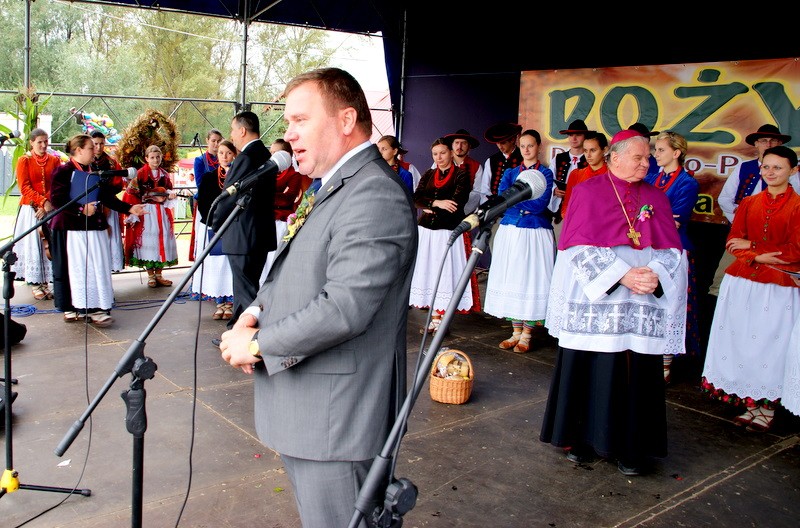 Dożynki rozpoczęła Mszą świętą dziękczynna sprawowana przez Księdza Biskupa Ordynariusza Diecezji Bielsko - Żywieckiej Tadeusza Rakoczego, który w swojej homilii podkreślił odpowiedzialną i trudną pracę rolników, dziękując za owoce ich pracy na roli. Po przywitaniu gości przez wójta gminy Radziechowy – Wieprz Grzegorza Figurę, starosta żywiecki Andrzej Zieliński w swoim wystąpieniu podziękował rolnikom za poświęcenie i codzienną pracę. Jak powiedział starosta „ historia zatoczyła koło” – nawiązując w ten sposób do pierwszych Diecezjalno – Powiatowych Dożynek organizowanych w 1999 roku w Radziechowach z pomocą nieodżałowanego ks. proboszcza Stanisława Gawlika oraz do 12 letniego okresu samorządu powiatowego. Po mszy, o której oprawę zadbała Orkiestra Dęta OSP z Radziechów oraz Zespół Regionalny “Grojcowianie” z Wieprza, miała miejsce część wieńcowa przygotowana także przez “Grojcowian”, tradycyjne obśpiewano gości i wręczono kosze dożynkowe z plonami z tegorocznych plonów.