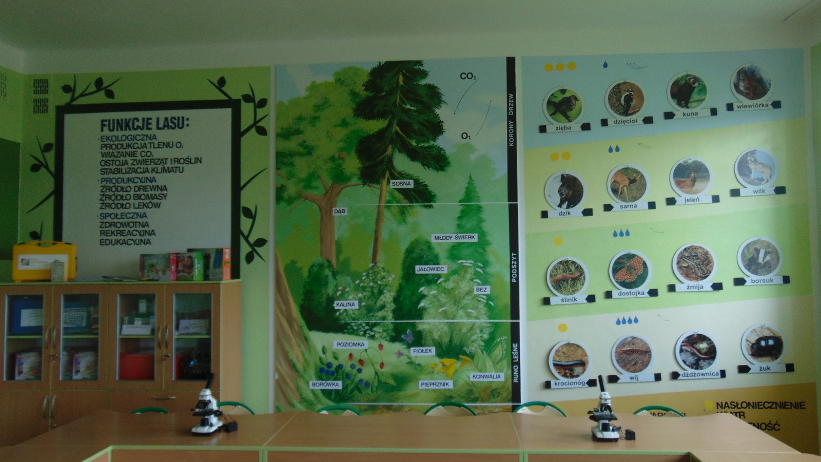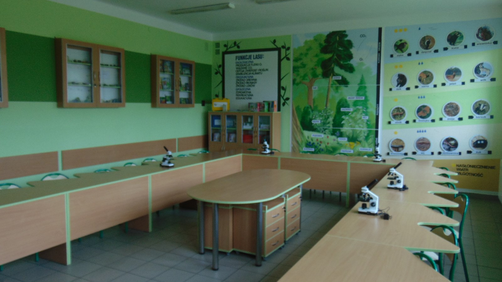 Pozyskana dotacja 34 652, 50 zł. została przeznaczona na utworzenie i modernizację pracowni przyrodniczej. Zakupiono nowoczesny sprzęt (tablicę interaktywną, projektor, sprzęt komputerowy), pomoce dydaktyczne (zestawy doświadczalne, mikroskopy, odczynniki, okazy przyrodnicze, modele organów), nowoczesne i ergonomiczne meble: krzesła, biurka, stoły doświadczalne, gabloty na skały i okazy, szafy.