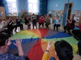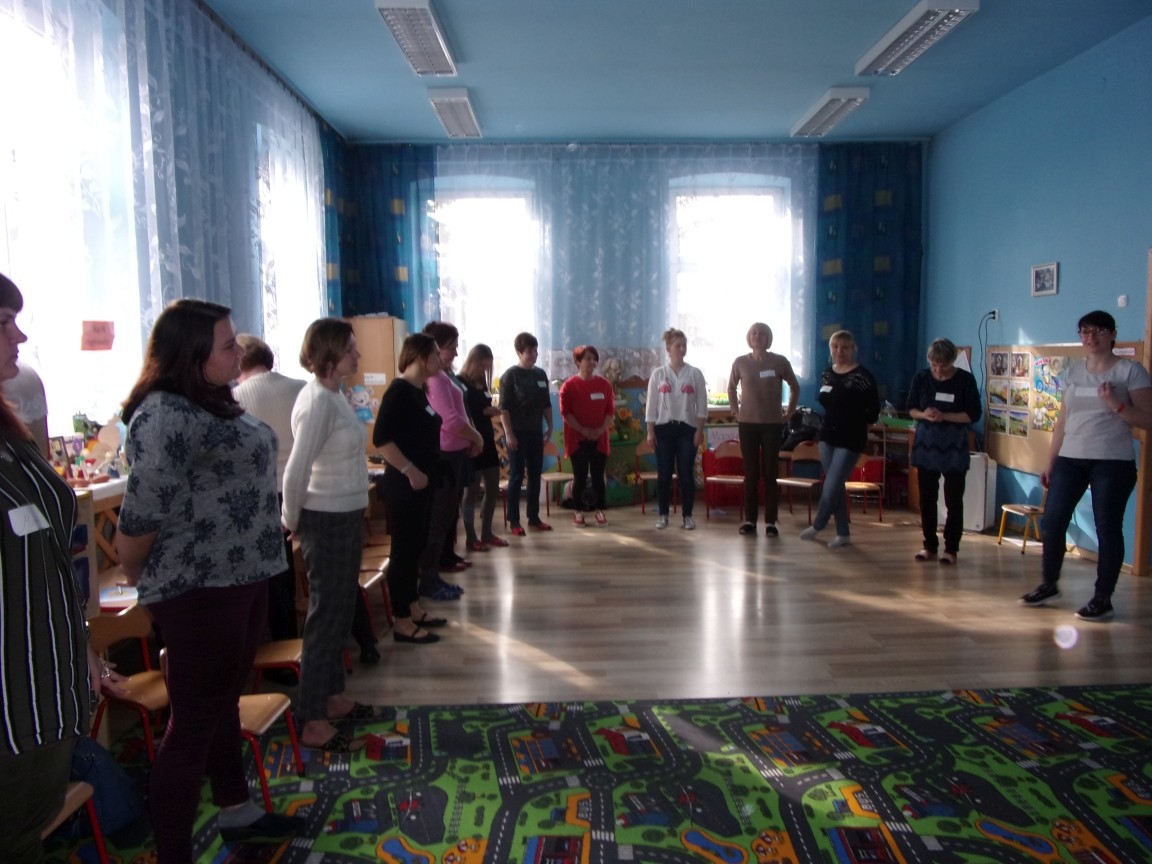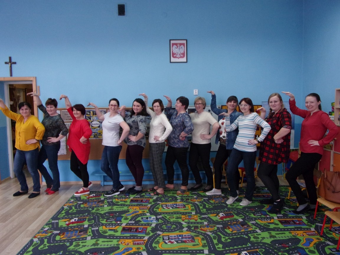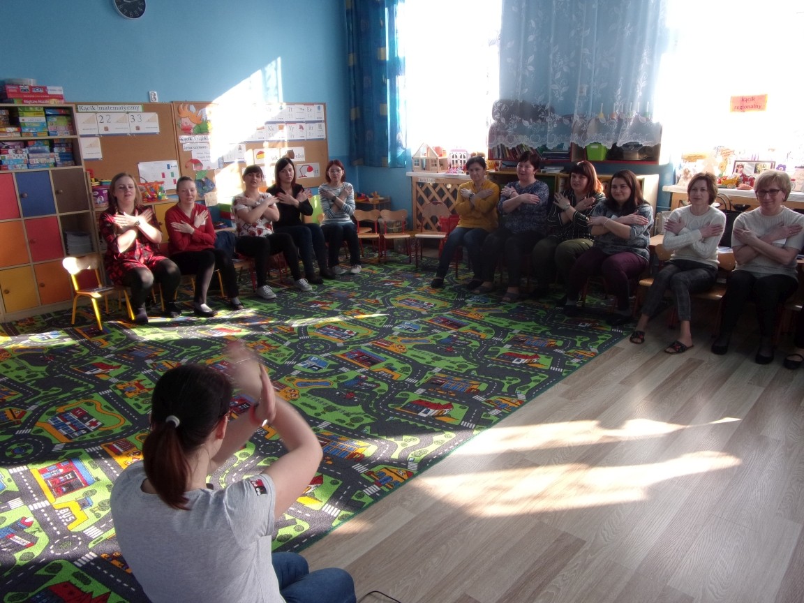 Tym razem w dniu wolnym od pracy na szkoleniu spotkały się nauczycielki z Przedszkola im. Władysława Pieronka w Radziechowach, Publicznego Przedszkola w Wieprzu i Zespołu Szkolno- Przedszkolnego w Bystrej. Projekt "Bumbumkowe Poruszanki", w oparciu o który prowadzone były warsztaty, jest realizacją wizji wspomagania rozwoju dzieci, począwszy od postawienia pierwszych kroków, aż do końca edukacji wczesnoszkolnej. Właśnie te lata są kluczowe dla rozwoju fizycznego i intelektualnego każdego człowieka. W tym okresie tworzą się zalążki wielu sprawności, które warunkują jakość funkcjonowania człowieka w dorosłym życiu. Celem szkolenia jest połączenie ćwiczeń rozwijających z muzyką we współczesnych aranżacjach. Nauczycielki uczestniczące w warsztatach wzbogaciły swój warsztat pracy o układy taneczne oparte m.in. na założeniach Ruchu Rozwijającego Weroniki Sherborne, teorii R. Labana, choreoterapii, metody Dennisona oraz zabawy przygotowujące m.in. do nauki pisania, ćwiczące koordynację ruchową, integrujące grupę i wspierające kształtowanie pojęć matematycznych.