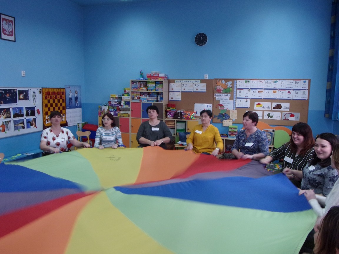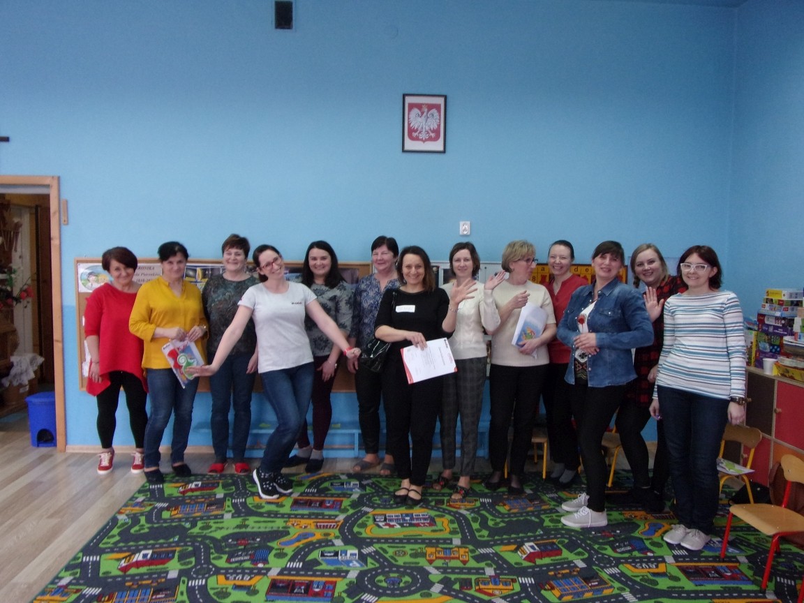 Dziękuję prowadzącej szkolenie Pani Elizie Szelidze- Kraus oraz wszystkim obecnym nauczycielkom za wartościowe spotkanie i cudowną atmosferę. Z uwagi na intensywny i obszerny program szkolenia konieczne było przeprowadzenie go w sobotę. Uczestniczące w szkoleniu nauczycielki przedszkola łączył wspólny cel: troska o rozwój najmłodszych mieszkańców naszej gminy.