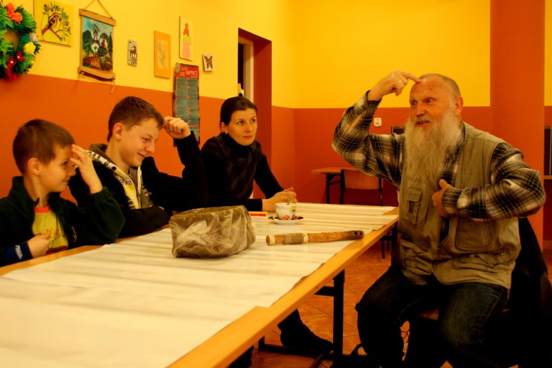 WARSZTATY odbywały się w ramach organizowanego II Konkursu na budowę instrumentów ludowych im. Jana Kawuloka i Feliksa Jankowskiego. Zajęcia w Brzuśniku prowadził znakomity muzyk, folklorysta i wspaniała osobowość jaką jest Pan Józef Broda. Zajęcia rozpoczęło rozważanie o dźwiękach i prostych instrumentach z źdźbła, listka czy pióra. Kolejnym etapem działania była budowa prostych glinianych okaryn i o dziwo pierwsze efekty instrumentów z mokrej jeszcze gliny były zadziwiająco pozytywne – bo kto sądziłby że można wydobyć pełną gamę z takiego surowego instrumentu budowanego po raz pierwszy w życiu przez młodych uczestników zajęć. Kolejne zajęcia za tydzień a wszystkich zapraszamy do zapoznania się z regulaminem KONKURSU i do udziału w nim !!!