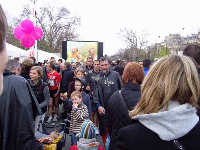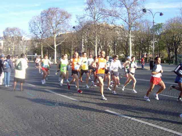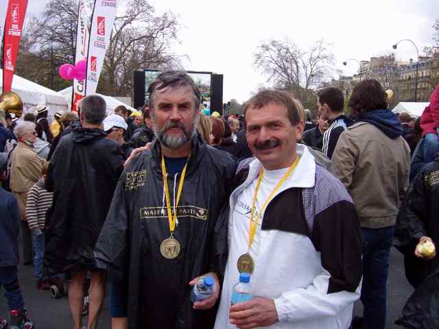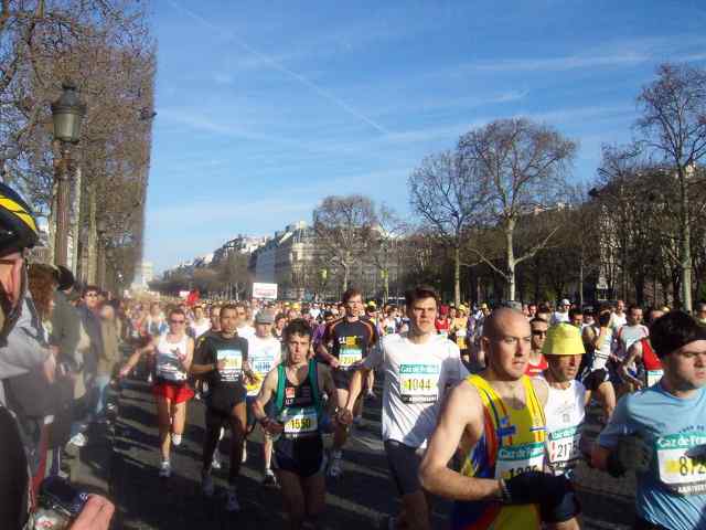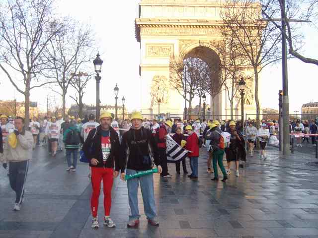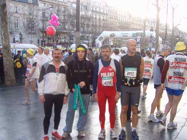 9 kwietnia o godzinie 8 ; 45 spod Łuku Triumfalnego wystartowało 35 000 zawodników ubranych w żółte Kapelusze. Gdy pierwsi zawodnicy byli już na trasie końcówka tego charakterystycznego wachlarza stała jeszcze pod bramą łuku, cały czas na trasie biegu były tłumy kibiców i różnorodne orkiestry, które umilały bieg maratończykom. Trasa maratonu została tak poprowadzona, że zawodnicy mogli podziwiać zabytki Paryża. Edward Dudek z Radziechowskiego Bacy ukończył bieg z czasem 3 godz 20 min na 4450 miejscu to i tak za sobą pozostawił ponad 30 000 biegaczy, zaś drugi z naszych maratończyków Marian Gołek z czasem 4 godz 39 min zajął 22 200. W biegu tym wystartowało około 300 biegaczy z Polski, wśród których pobiegł znany redaktor sportowy TVP Maciej Kurzajewski osiągając metę na 14 929 pozycji.