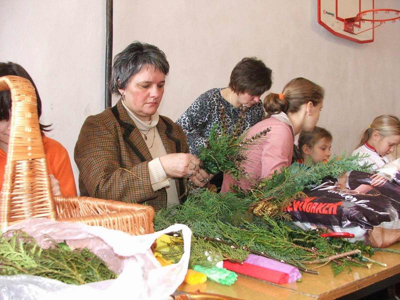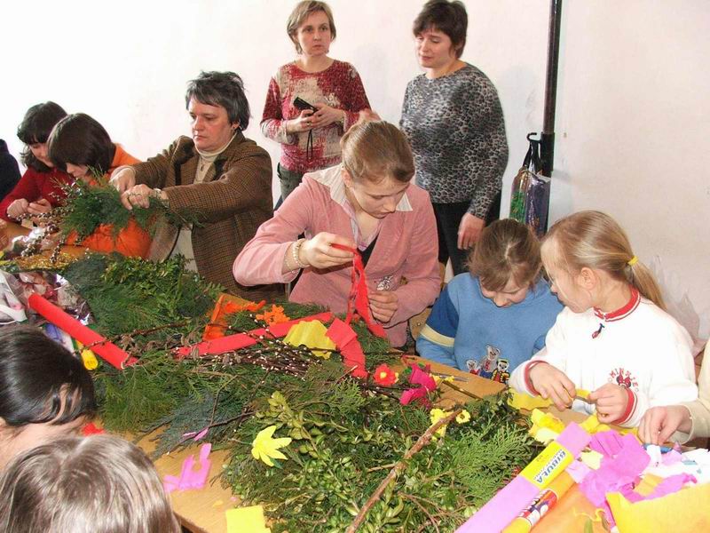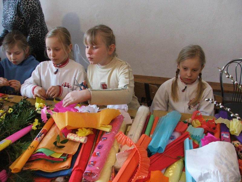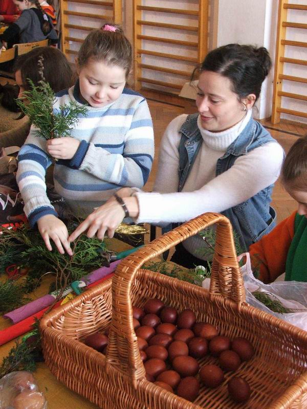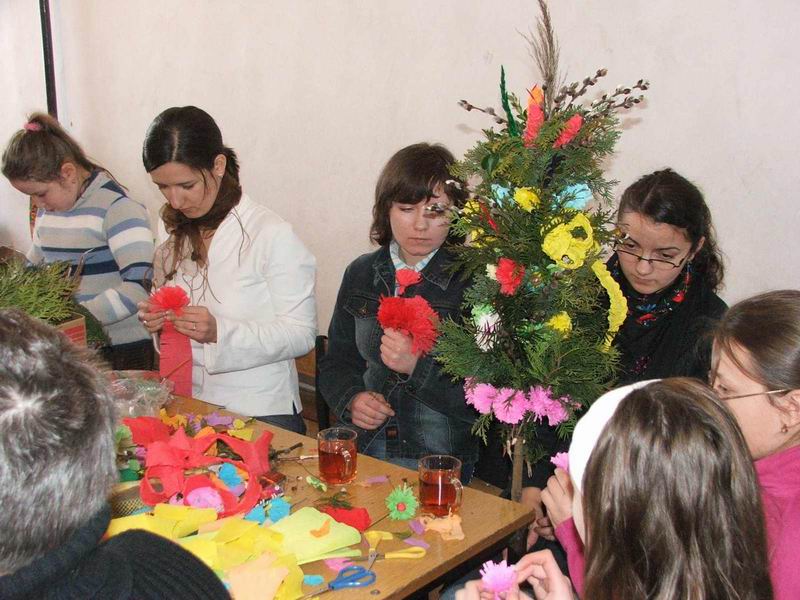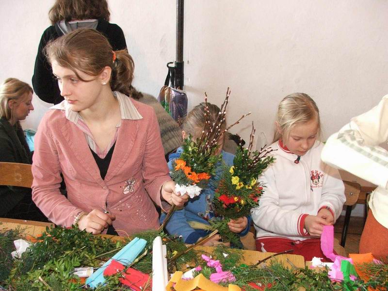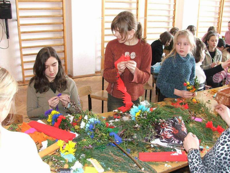 Instruktorzy prezentowali sposób wykonania i ozdabiania tradycyjnych palm wielkanocnych oraz sposoby zdobienia wielkanocnych jaj.