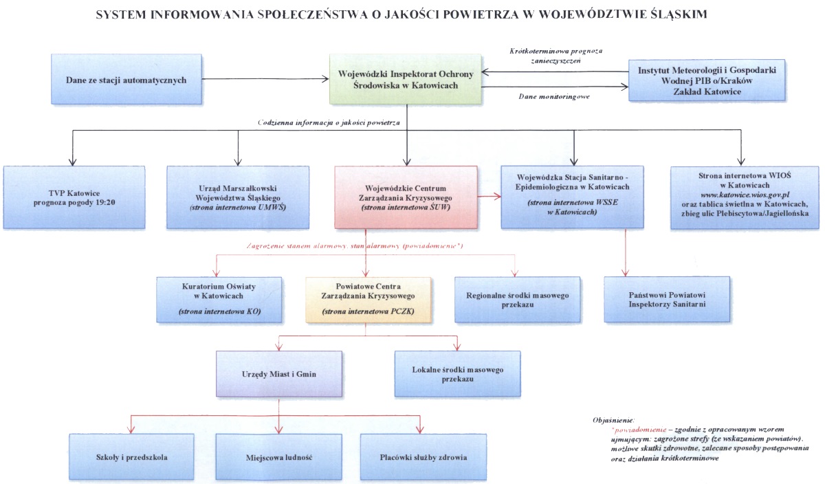 Odbywa się to na podstawie „Procedury powiadamiania o jakości powietrza", która jest elementem „Planu zarządzania kryzysowego województwa śląskiego".