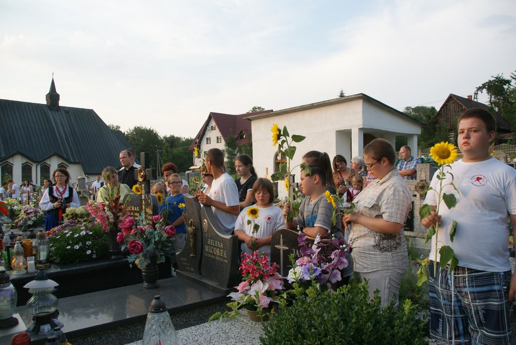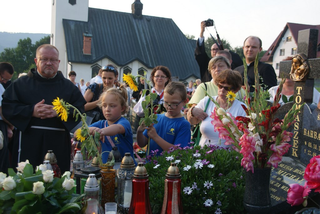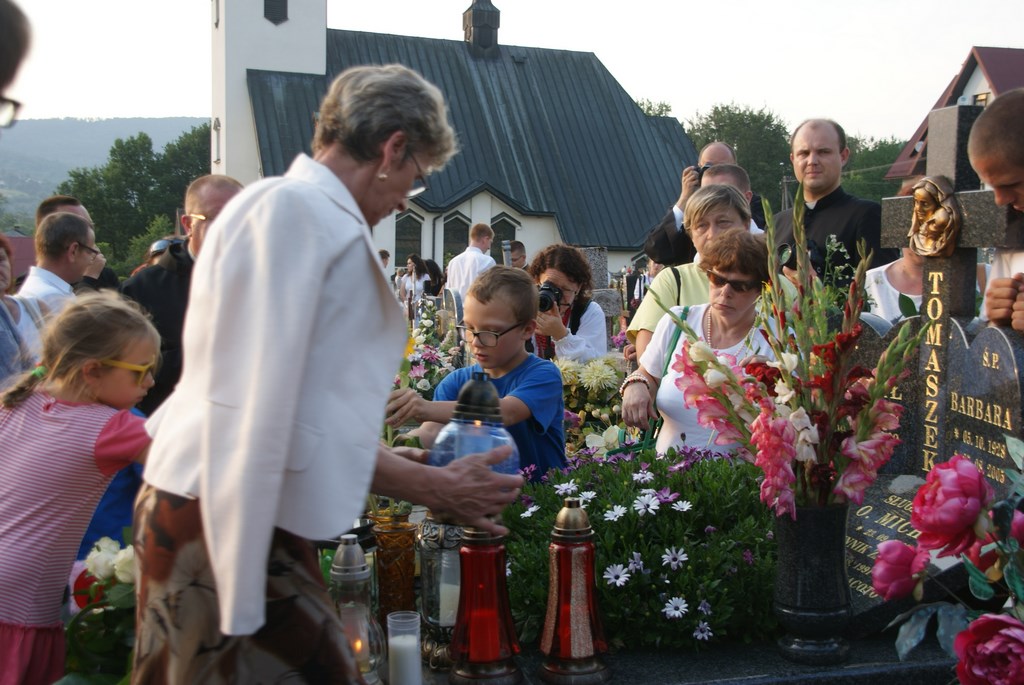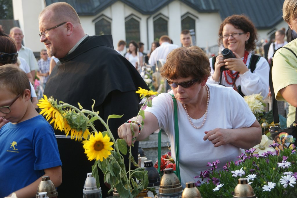 Po mszy pojechali do Łękawicy, by tam włączyć się do uroczystości parafialnych, a na zakończenie złożyć wiązanki kwiatów polnych i słoneczniki na grobie Patrona. Dlaczego kwiaty polne? To nawiązanie do piosenki ,,Polskie kwiaty” jaką zaśpiewali mu parafianie gdy wyjeżdżał na misje – powiedział wówczas, że jak wróci to znów mu ją zaśpiewają.