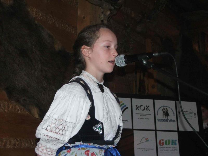 Jury Konkursu muzycznego pracujące w składzie: Zuzanna Kawulok – muzyk, folklorysta, Józef Łanowski – muzyk, Teresa Kłaptocz Chrapek – muzyk, wysłuchała 18 instrumentalistów i 2 kapel grających na skrzypcach, dudach, okarynach, piszczałkach, heligonkach. W tym konkursie jury przyznało następujące nagrody : DOROŚLI – I miejsce Władysław Byrtek z Pewli Wielkiej i Mieczysław Kamiński z Przyborowa, II miejsce Kamil Wojtyła z Żabnicy i Edward Byrtek z Pewli Wielkiej, III miejsca nie przyznano, WYRÓŻNIENIA dla Józefa Hernasa, Mateusza Kalfasa i Mariusza Ciupki. W kategorii DZIECI I MŁODZIEŻY I miejsce przyznano Katarzynie Juroszek z Jaworzynki, II miejsce Patrycji Figura z Cięciny, III miejsca nie przyznano, WYRÓŻNIENIA dla Wojciecha Maciejowskiego z Żywca i Klaudii Małyjurek z Jaworzynki W kategorii kapel nagrodzono kapelę “Fickowo Pokusa” Marcina Pokusy i Przemysława Ficka oraz Kapelę Antoniego Gluzy ze Szczyrku. Przyznano też nagrodę dla Moniki Wałach z Jaworzynki za wkład w zachowanie tradycji i krzewienie kultury muzycznej u dzieci. Pani Zuzanna Kawulok ufundowała indywidualne nagrody rzeczowe dla Patrycji Figury z Cięciny, Katarzyny Juroszek z Jaworzynki i Janka Zowady z Koniakowa. Komisja oceniająca gawędziarzy pracowała w składzie: Małgorzata Kiereś – etnograf, Barbara Rosiek – etnograf, Janusz Legoń – kierownik literacki Teatru Polskiego w Bielsku-Białej. W kategorii DOROSŁYCH I miejsca nie przyznano. II miejsca otrzymali – Wiesław Pawlus z Wieprza i Helena Sobel z Wieprza, III miejsca Józefa Sordyl z Korbielowa i Helena Klęczar z Osieka. Przyznano również 3 WYRÓŻNIENIA dla Zofii Sordyl z Korbielowa , Zuzanny Raszki z Wisły i Walerii Prochownik z Żywca Sporysza. Wśród DZIECI I MŁODZIEŻY I miejsca przypadły Annie Polak z Juszczyny i Sabinie Haratyk z Koniakowa, II miejsce przypadło Jakubowi Polakowi z Juszczyny a III Mateuszowi Urbasiowi z Juszczyny i Urszuli Szarzec z Wisły. Jury postanowiło przyznać też 9 WYRÓŻNIEŃ dla Justyny Polak z Wieprza, Justyny Wolny z Przybędzy, Bogumiły Szarzec z Wisły, Aleksandry Kulig z Koniakowa, Sławomira Drozda z Wisły, Justyny Klimczak , Zuzanny Kawulok i Krystiana Kupczaka z Juszczyny.
