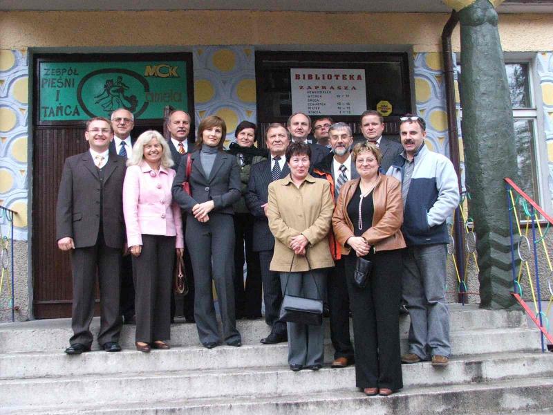 Delegacja w składzie: Aleksander Kaletka – Wójt Gminy, Edward Dudek – Przewodniczący Rady Gminy, Maciej Krakowiński – Sekretarz Gminy, Barbara Pietrysko – Skarbnik Gminy, radni gminni – Małgorzata Szczotka, Leon Niewiadomy, Janusz Słowy, Damian Dudys, Marek Jurasz – Dyrektor GOK, Wiesław Jakubiec – dyrektor Gimnazjum w Wieprzu, miała okazję zapoznać się z urokami Mieroszowa i Ziemi Wałbrzyskiej, poznać specyfikę gminy, działalności oświatowej, kulturalnej i sportowej. Napięty program pobytu delegacji pozwolił na obejrzenie wielu ciekawych miejsc i obiektów: Sokołowska (gdzie delegacja brała udział w odsłonięciu tablicy pamiątkowej poświęconej mieszkającemu tam jakiś czas Krzysztofowi Kieślowskiemu oraz brała udział w wystawie i obejrzała cerkiew św. Michała Archanioła), Rybnicy Leśnej z zabytkowym kościołem, kamieniołomami i kompleksem sportowo-turystycznym ze schroniskiem na Andrzejówce znanym z wielkich imprez narciarstwa biegowego – Biegu Gwarków. Delegacja zwiedzała też jeden z podziemnych kompleksów Riese budowanych przez hitlerowców w Górach Sowich oraz Zamek i stadninę koni w Książu. Uczestnicy spotkania mieli też możliwość zapoznania się z aktywnie rozwijającą się bazą agroturystyczną na tym terenie. Delegacja gminy Radziechowy-Wieprz brała też udział w koncercie ZPiT “Camela”i grup tanecznych z MCK w Mieroszowie ( w koncercie wystąpiła również Kapela “Grojcowianie” z Wieprza) oraz w oficjalnym spotkaniu z samorządowcami gminy Mieroszów gdzie w przyjaznej atmosferze nastąpiła wymiana doświadczeń i okolicznościowych upominków.