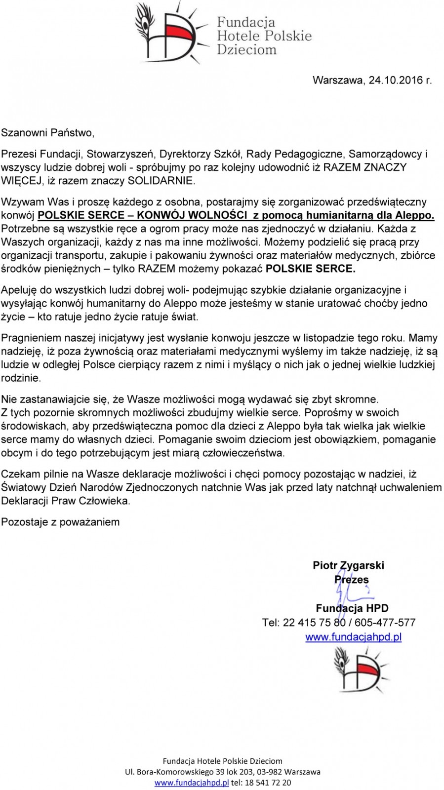 Zaproszenie do wspólnej akcji Pomoc dla Aleppo