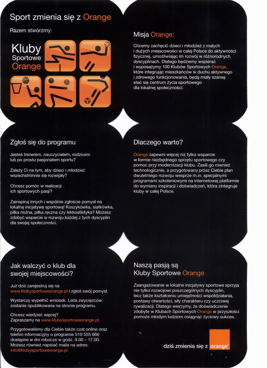 Więcej informacji oraz przewodnik po programie znajdą Państwo na www.klubysportoweorange.pl.
