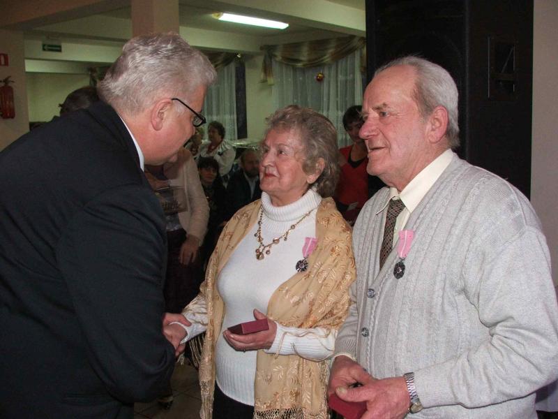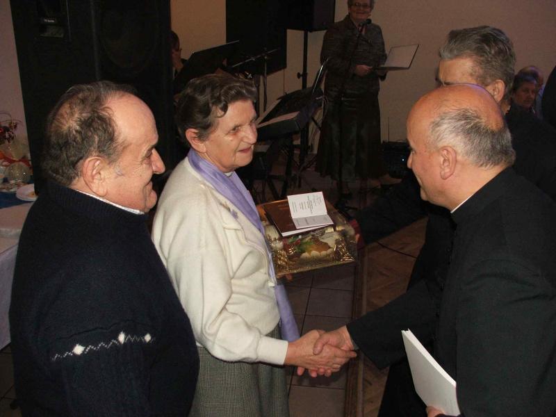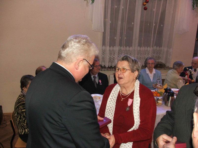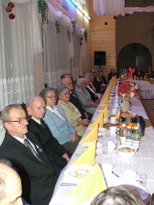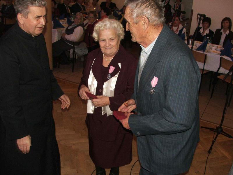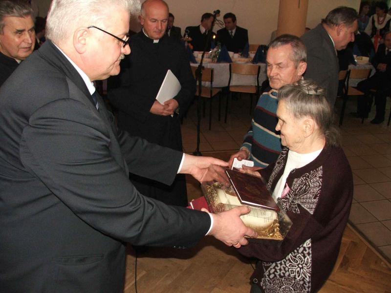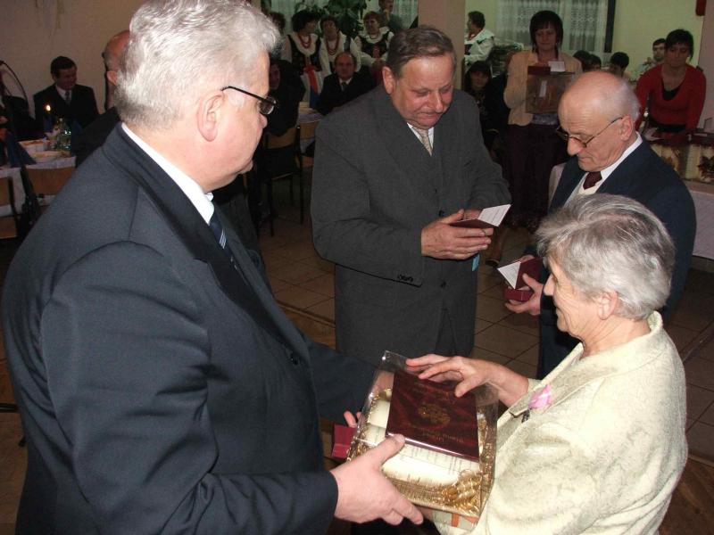 Wśród odznaczonych znaleźli się: Janina i Władysław Skowron, Aniela i Władysław Błachut, Stanisława i Władysław Kamińscy, Otylia i Franciszek Kanik, Otylia i Jan Lalik, Krystyna i Czesław Łodziana, Anna i Jan Rybarscy, Cecylia i Stanisław Sapeta, Stanisława i Jan Tlałka, Kazimiera i i Władysław Noga (wszyscy z Radziechów), Joanna i Tomasz Jagosz oraz Maria i Michał Bąk z Przybędzy, Zofia i Jan Skrzypek, Joanna i Kazimierz Matlak, Maria i Józef Biegun, Anna i Andrzej Kicmal, Helena i Józef Biegun, Anna i Jan Noga (wszyscy z Wieprza) oraz Maria i Jan Marek z Brzuśnika. Oprawę artystyczną imprezy stanowił koncert kolęd w wykonaniu najmłodszych “Małych Grojcowian” z Wieprza oraz koncert Kapeli RZPiT “Jodełki” z Radziechów. Swoje przyśpiewki dla Jubilatów zaprezentowało też Koło Gospodyń Wiejskich z Brzuśnika. Gospodynie z Brzuśnika przygotowały również wspaniałą kolację i jubileuszowy tort.