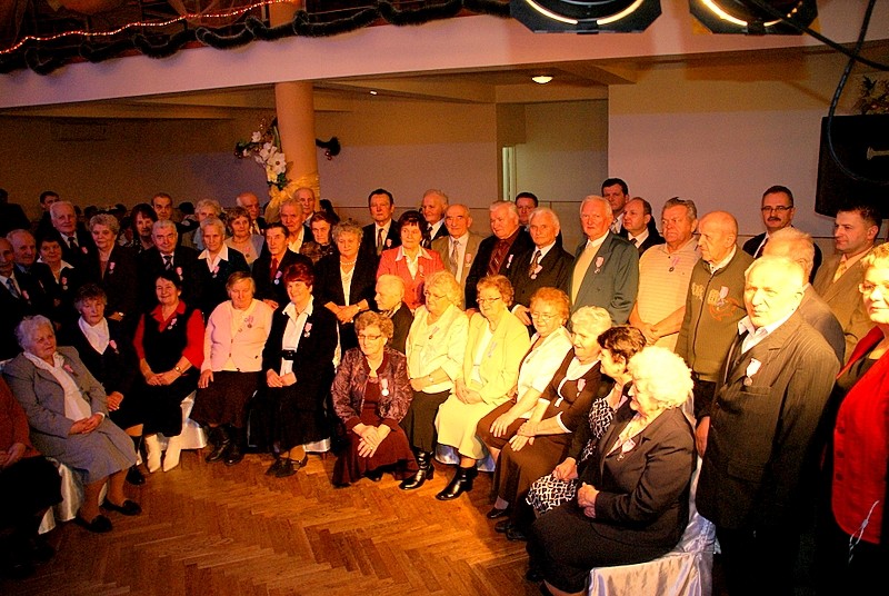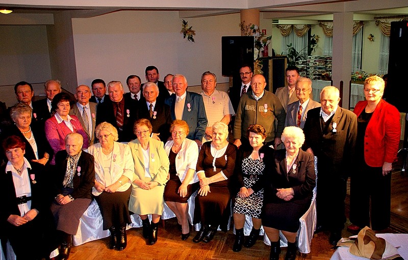 Medale wręczał Wójt Gminy Grzegorz Figura i Przewodniczący Rady Gminy Marian Motyka. Okolicznościowe życzenia w imieniu duchownych złożył Ks. Proboszcz Stanisław Jania z Wieprza. Część artystyczną przygotowały dzieci z Przedszkola Publicznego w Wieprzu i Oddziału Przedszkolnego z Brzuśnika oraz dzieci z SP w Przybędzy. Nad częścią gastronomiczną czuwały panie z KGW w Brzuśniku. Panie z wszystkich KGW z całej gminy również przygotowały upominki i odśpiewały wspólnie przygotowaną pieśń dla dla Jubilatów.